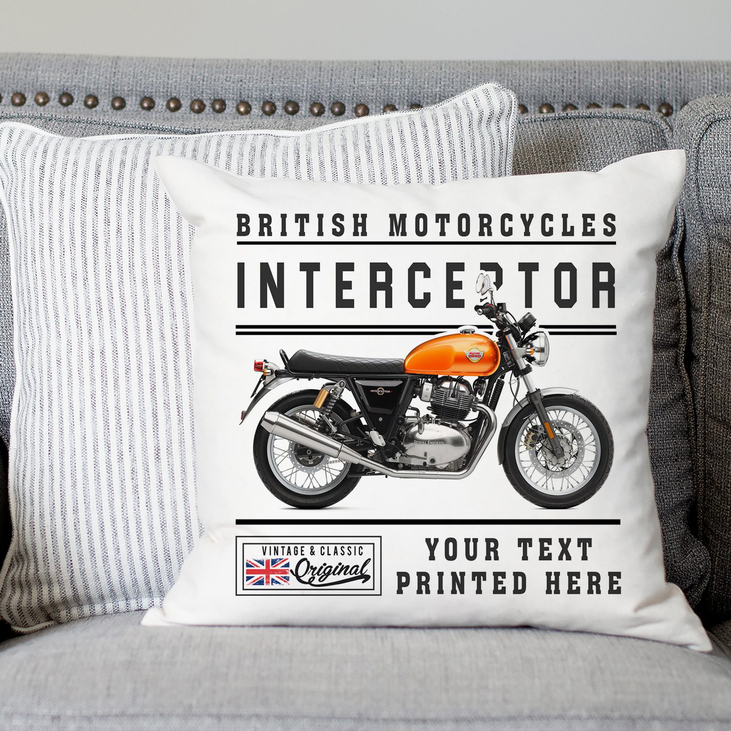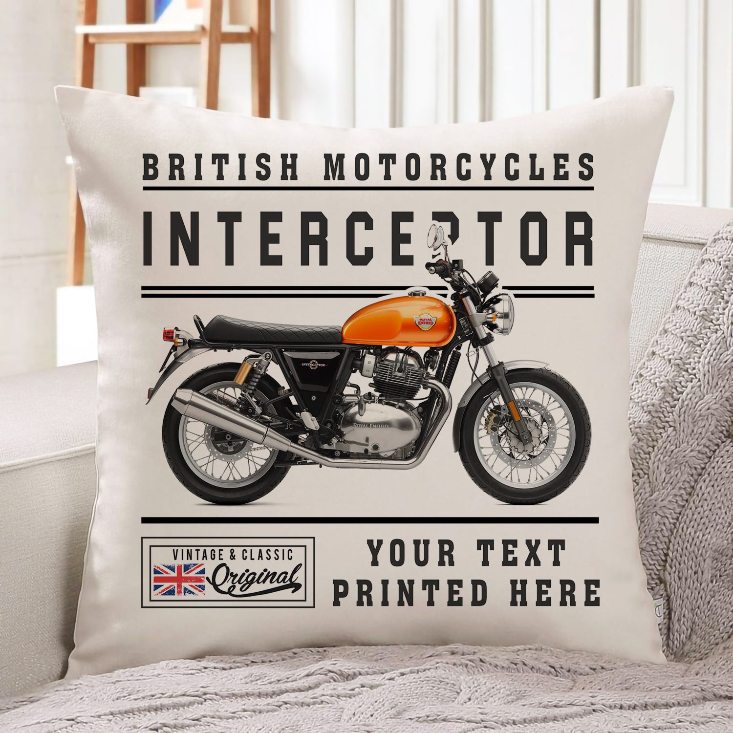 Personalised Royal Enfield Interceptor Motorcycle Cushion Cover VBC32