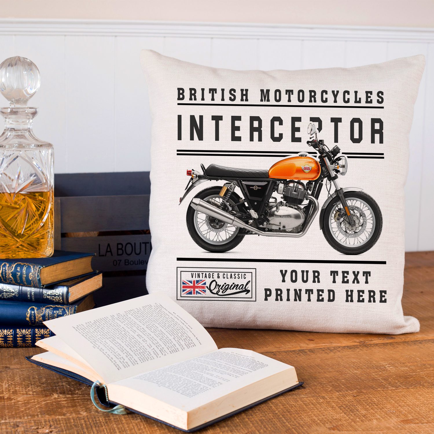 Be the first to review “Personalised Royal Enfield Interceptor Motorcycle Cushion Cover VBC32”