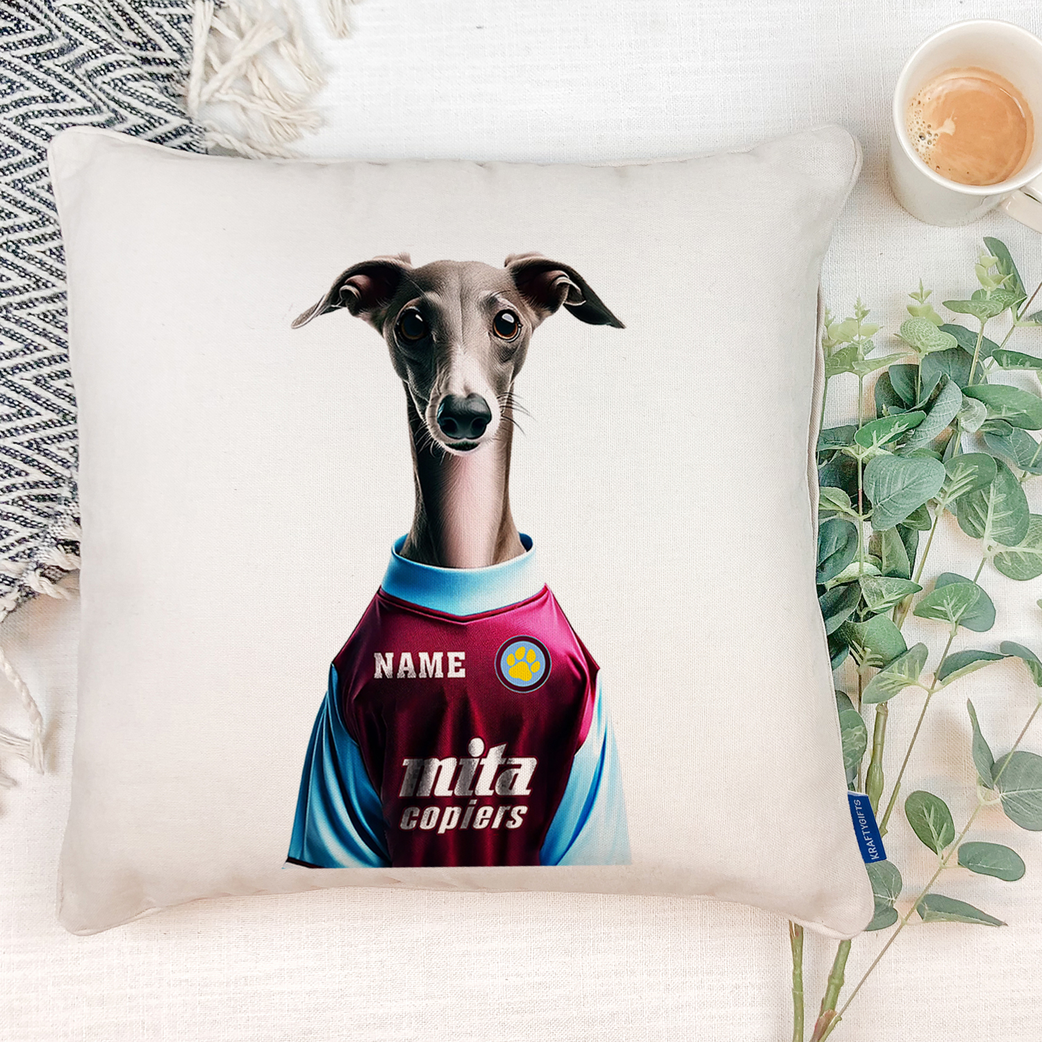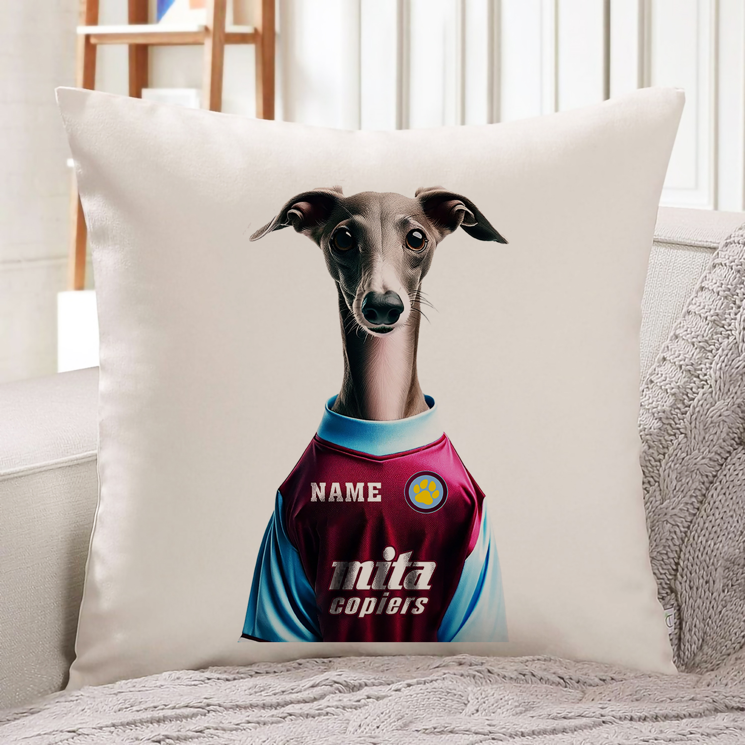 Aston Villa Football Italian Greyhound Dog Cushion Personalised Cover DFC556