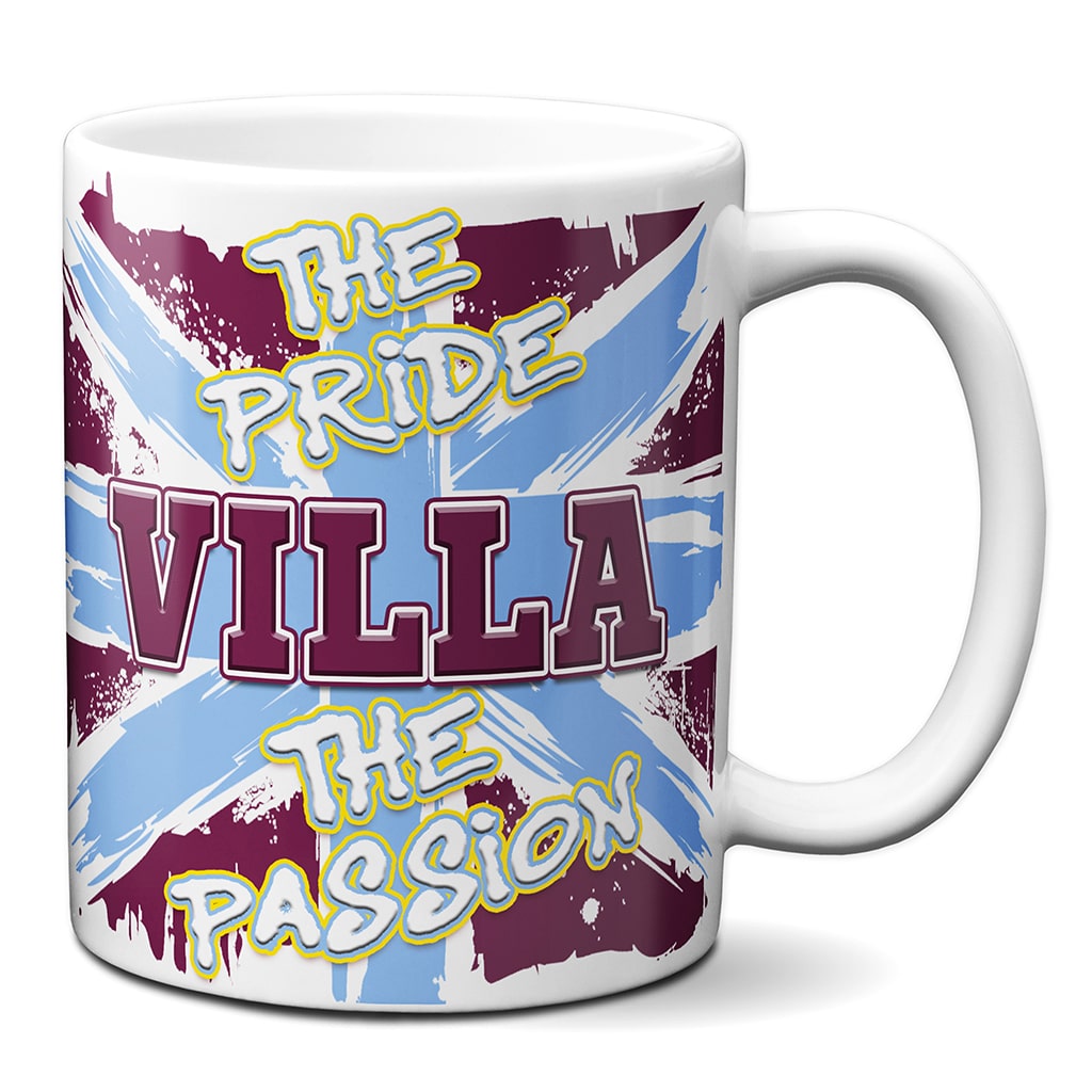 Our Pride & Passion Aston Villa Football Mug is handmade to order. With a striking coloured background, our designs are the perfect gift for any Football Fan. This mug will make a unique present that is sure brighten up any match day fixture.