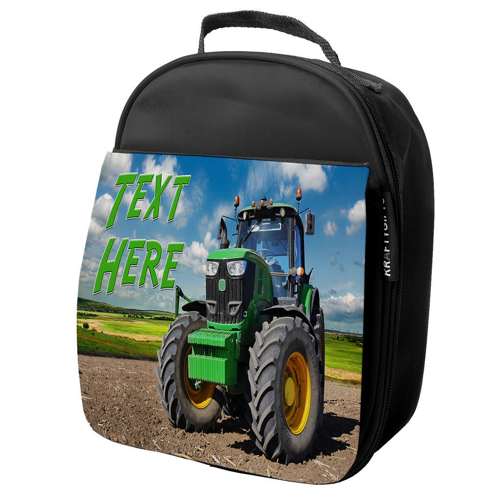 Personalised Tractor Kids Black Lunch Bag KSU07