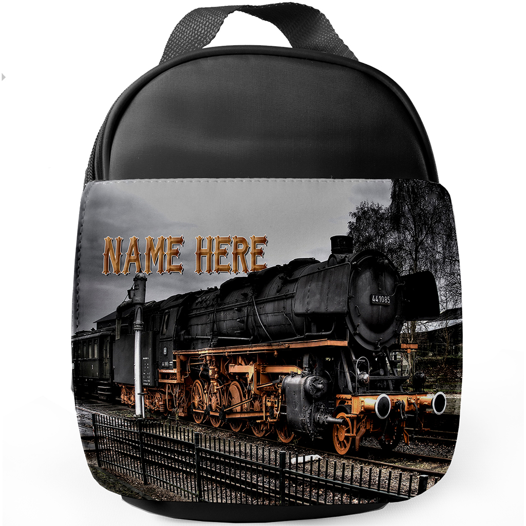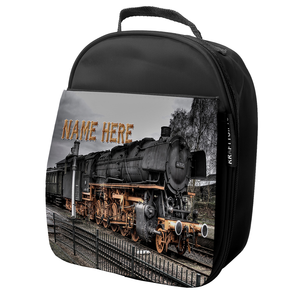 Personalised Steam Train Kids Black Lunch Bag SS002