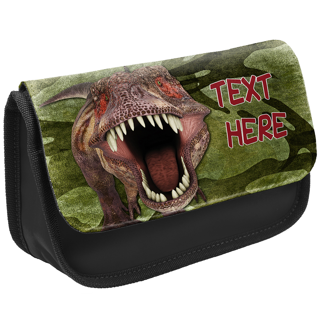 Personalised T Rex Dinosaur Kids Black Pencil Case DP37