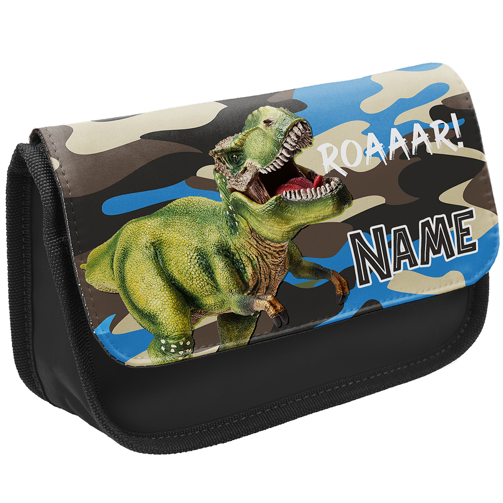 Personalised T Rex Dinosaur Kids Black Pencil Case KSP231