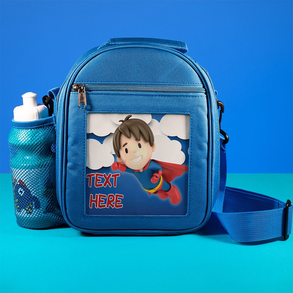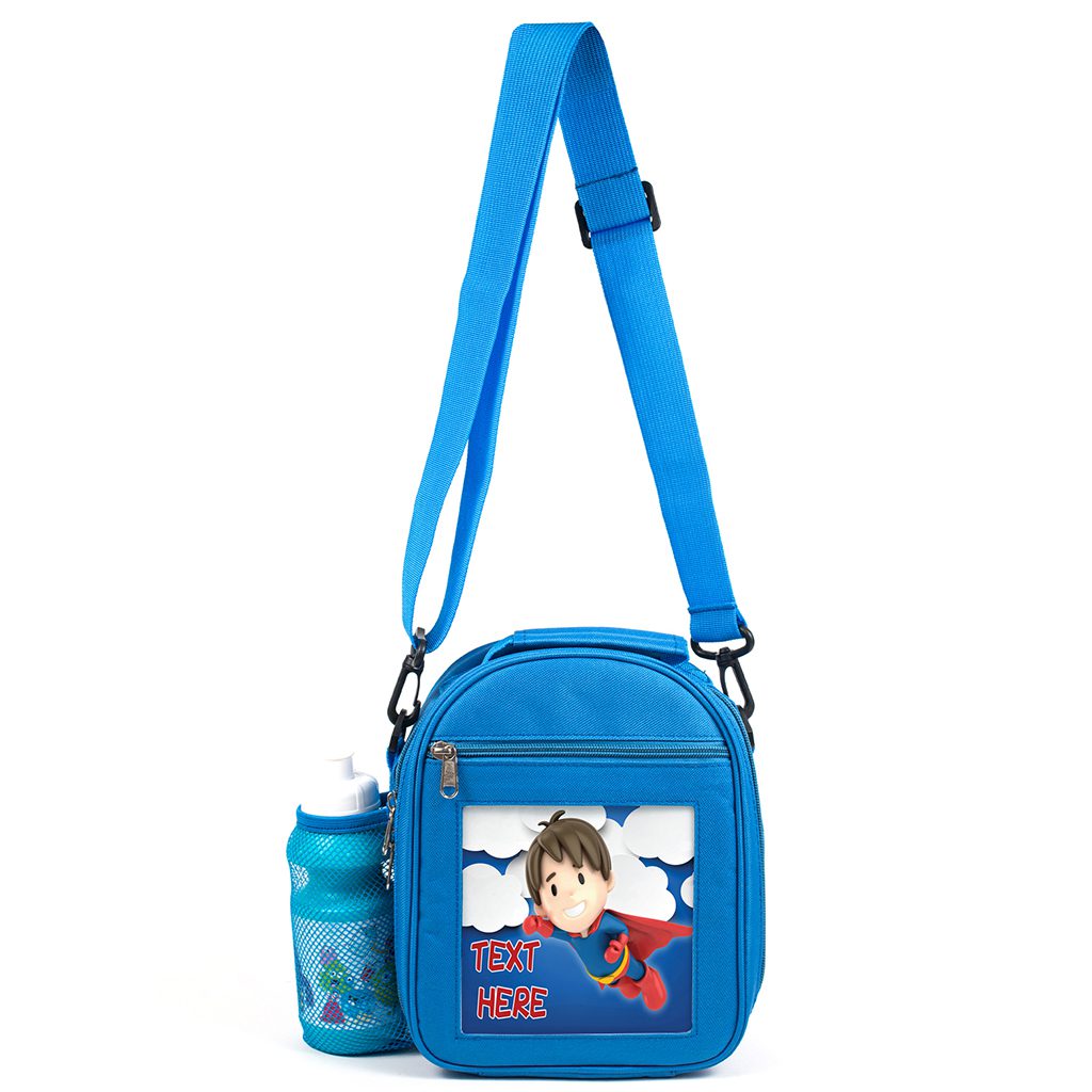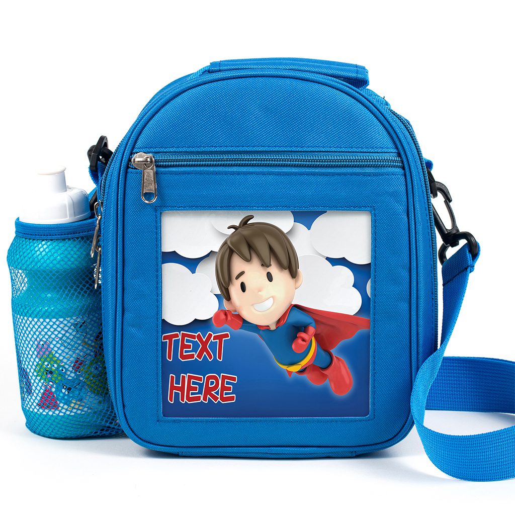 Personalised Super Boy Blue Kids Lunch Bag DP12