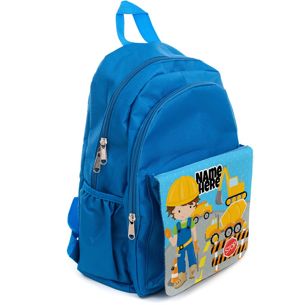 Personalised Digger Builder Kids Blue Backpack EC039