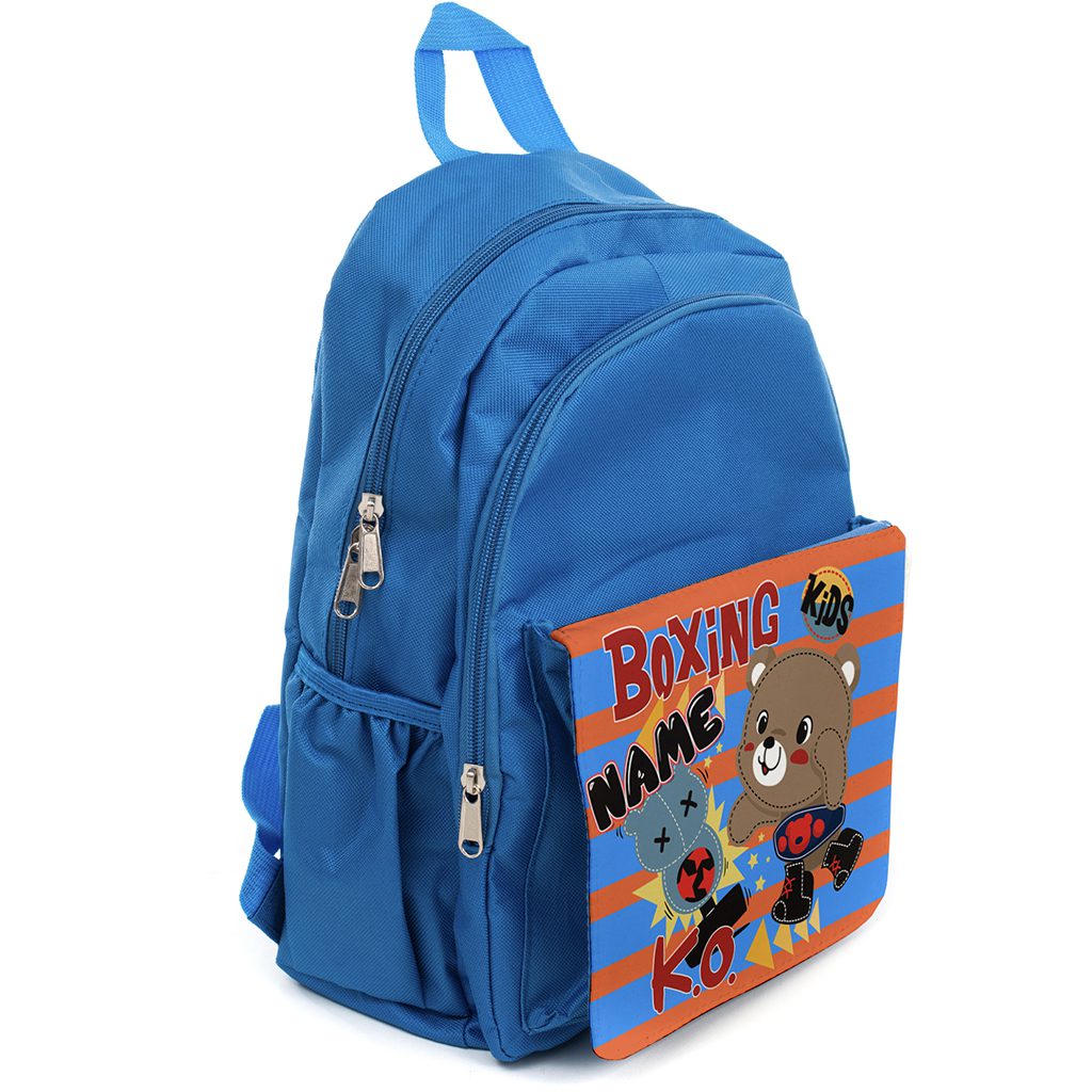 Personalised Boxing Bear Kids Blue Backpack KK07
