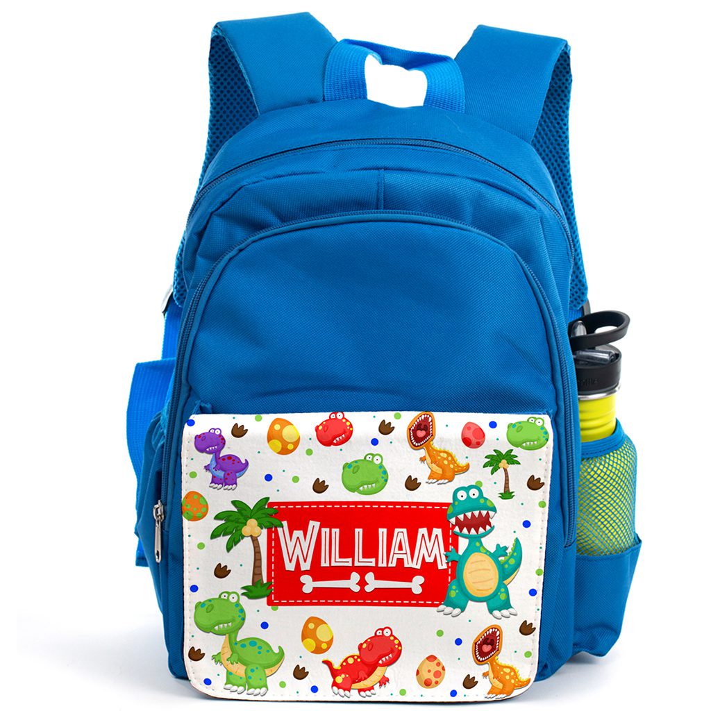 Personalised dinosaur backpack is ideal school rucksack.