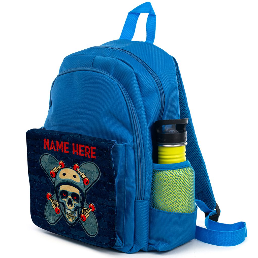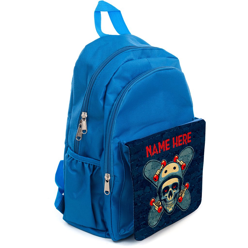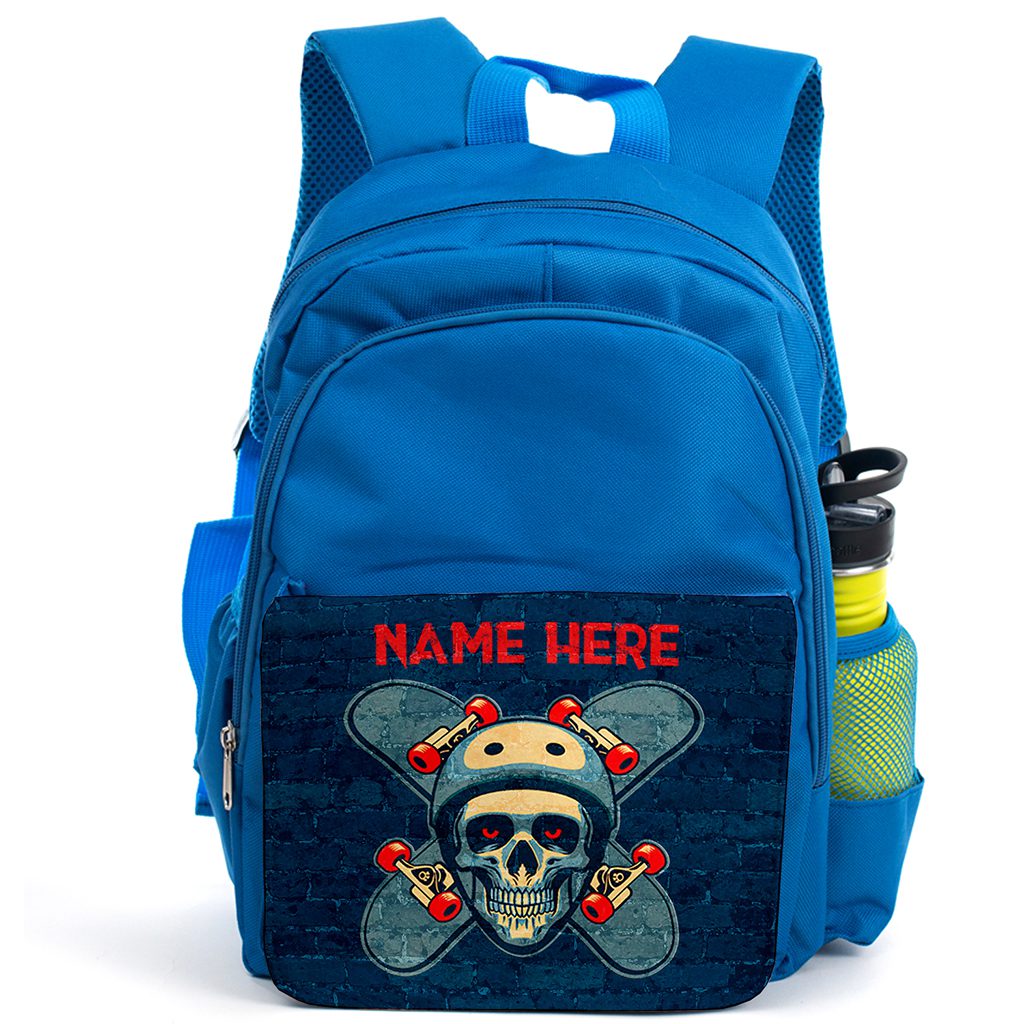 Personalised Skateboard Skull Kids Blue Backpack ST265