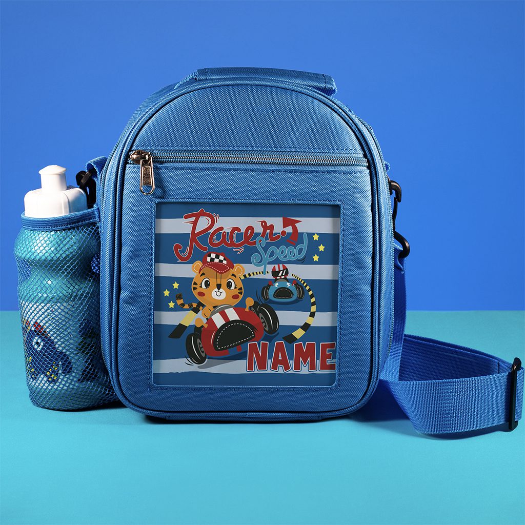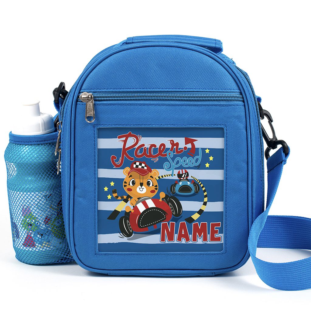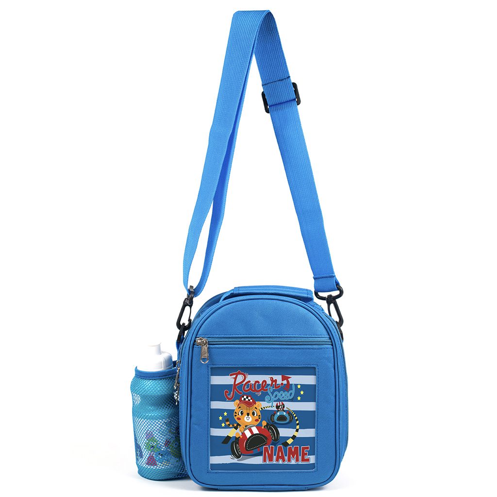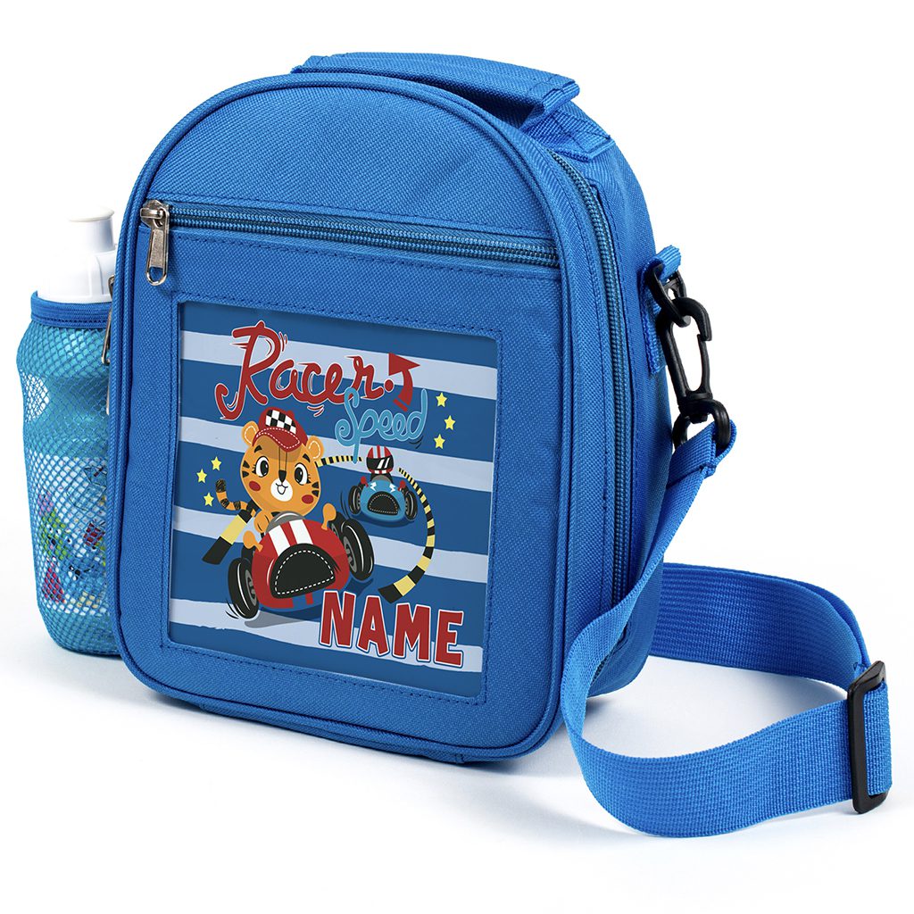 Personalised Racing Tiger Blue Kids Lunch Bag KK20