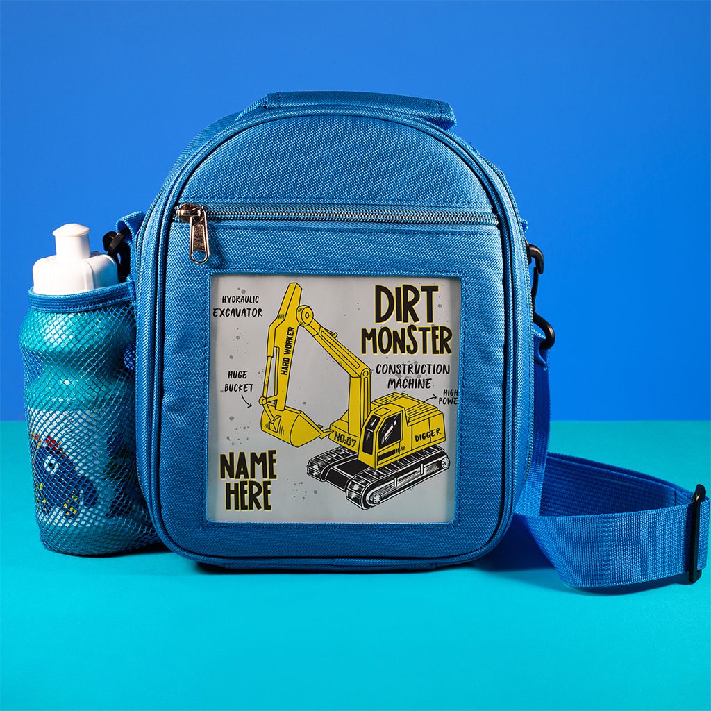 Personalised digger lunch bag is ideal to carry school lunch or for nursery.