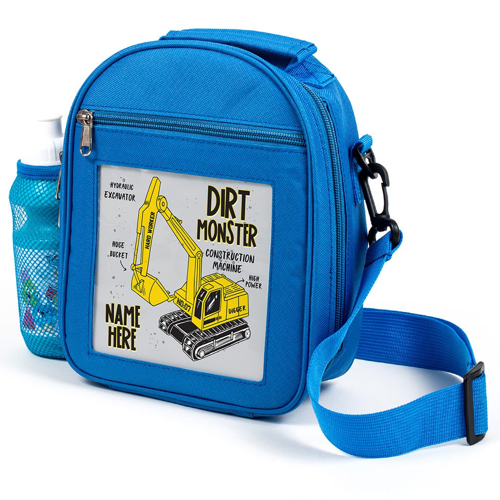 Personalised Digger Blue Kids Lunch Bag KS246