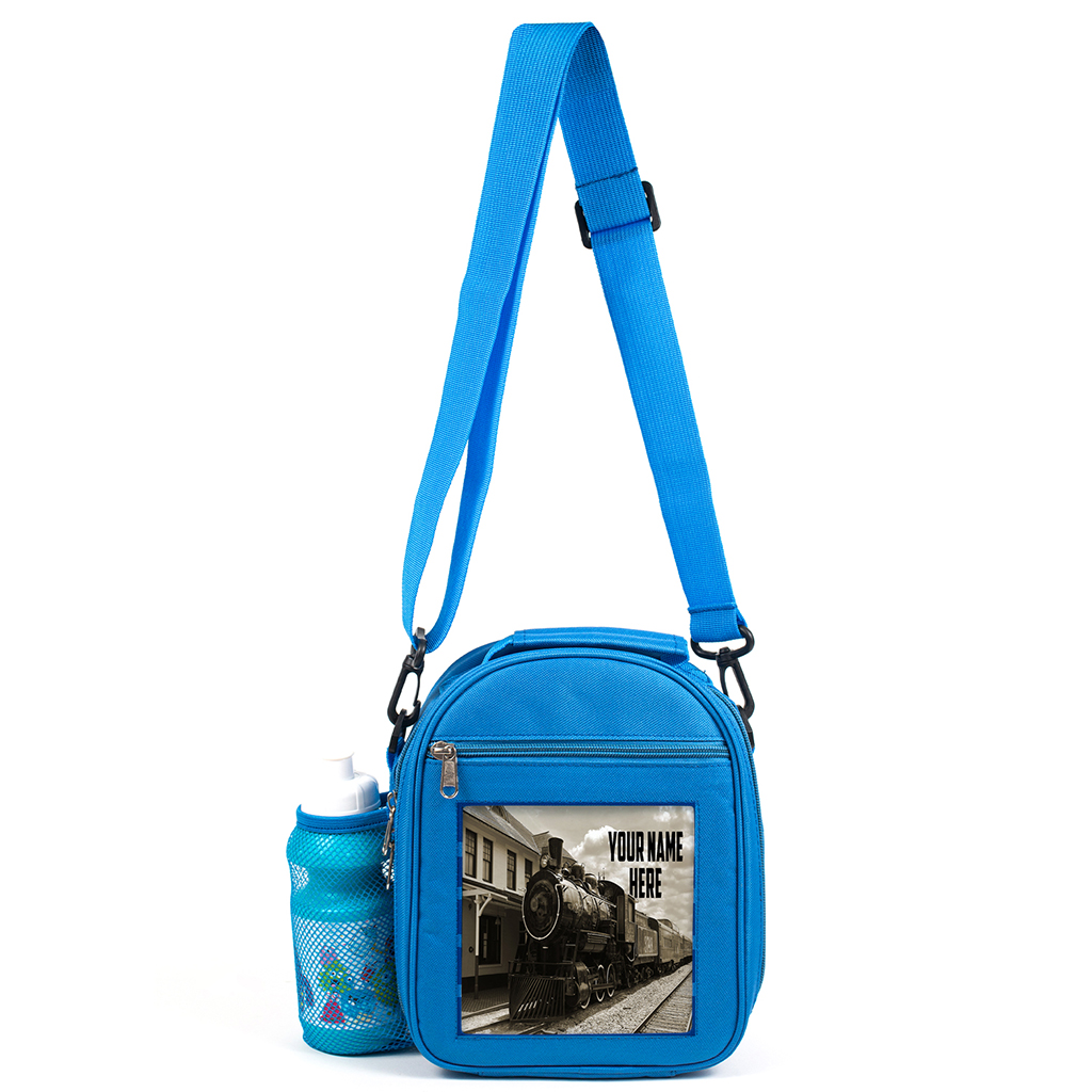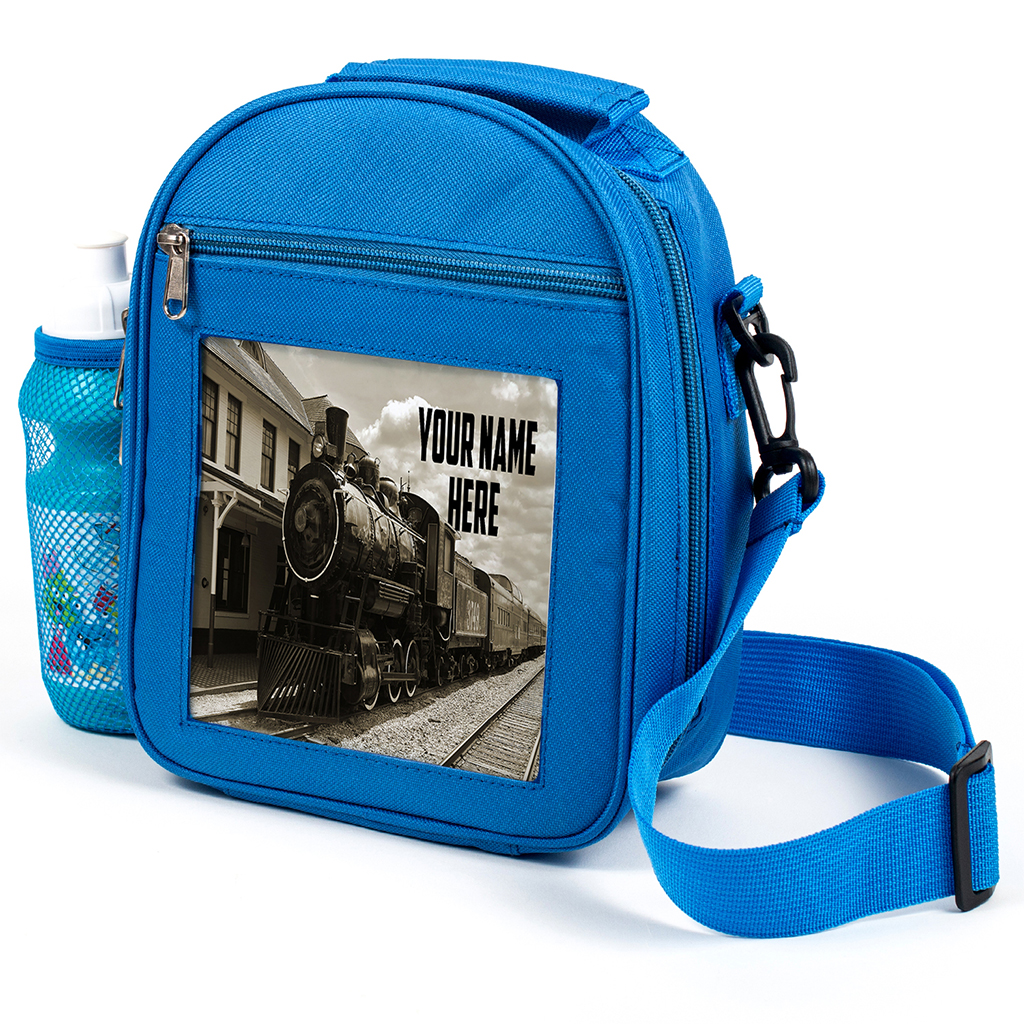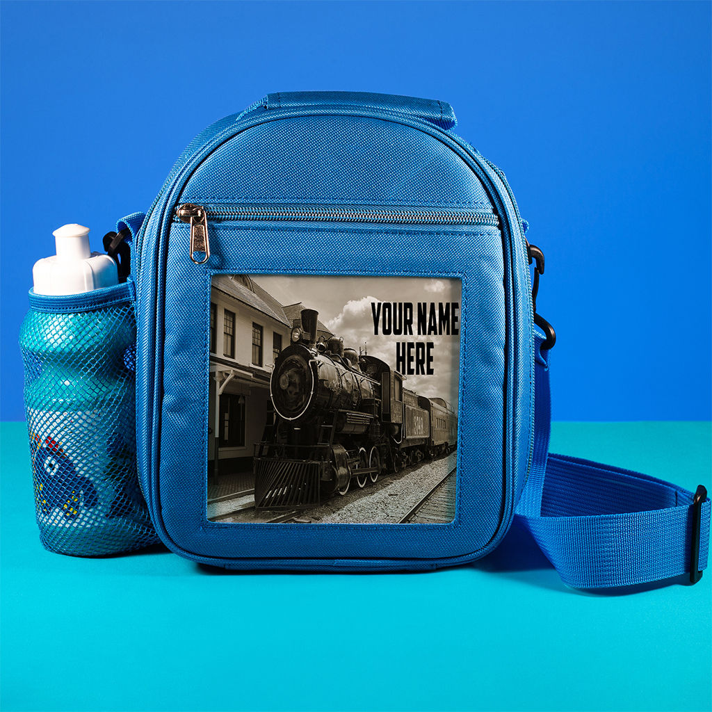 Personalised Steam Train Kids Blue Lunch Bag ST148
