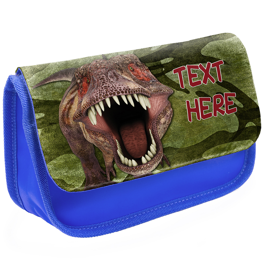 Personalised T Rex Dinosaur Kids Blue Pencil Case DP37