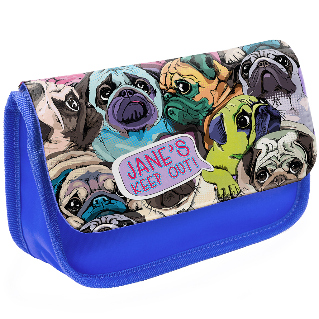 Personalised Pug Kids Blue Pencil Case KSP230