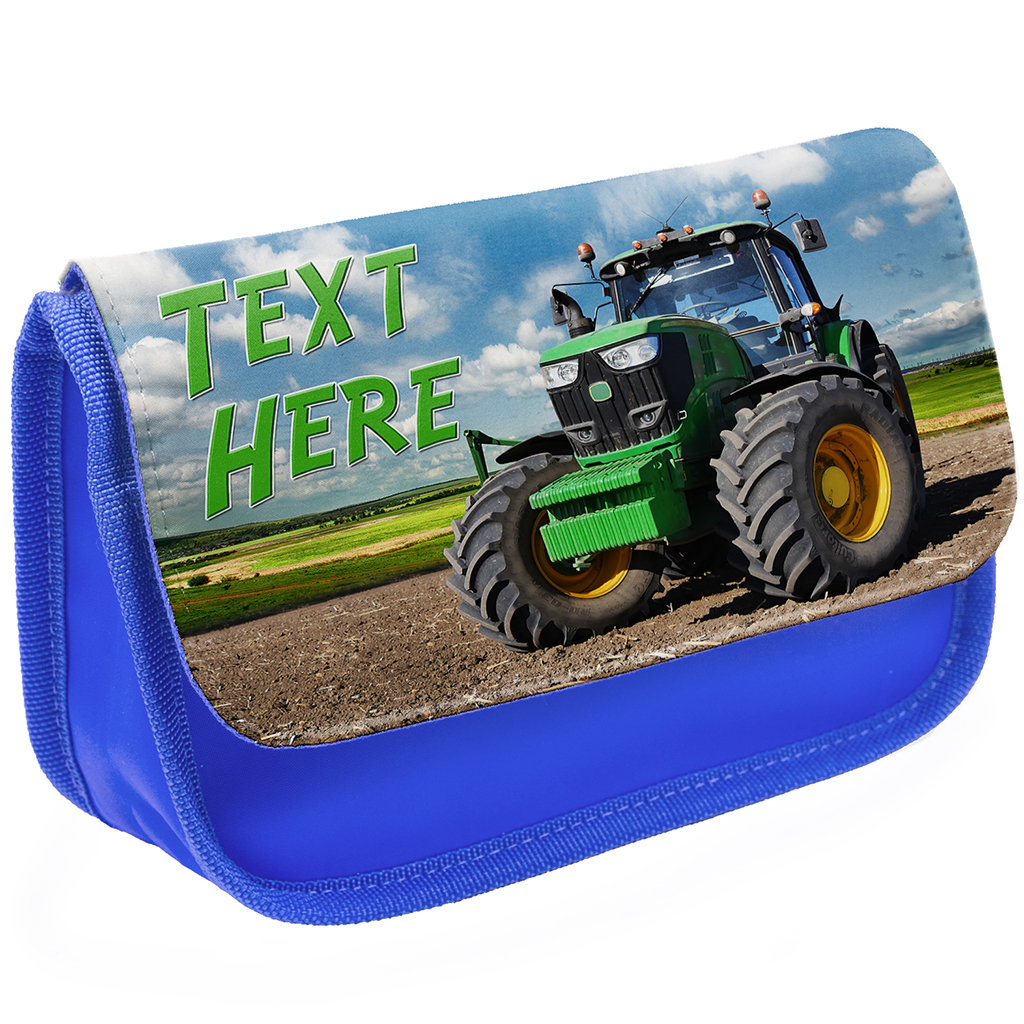 Personalised Tractor Kids Blue Pencil Case KSU07