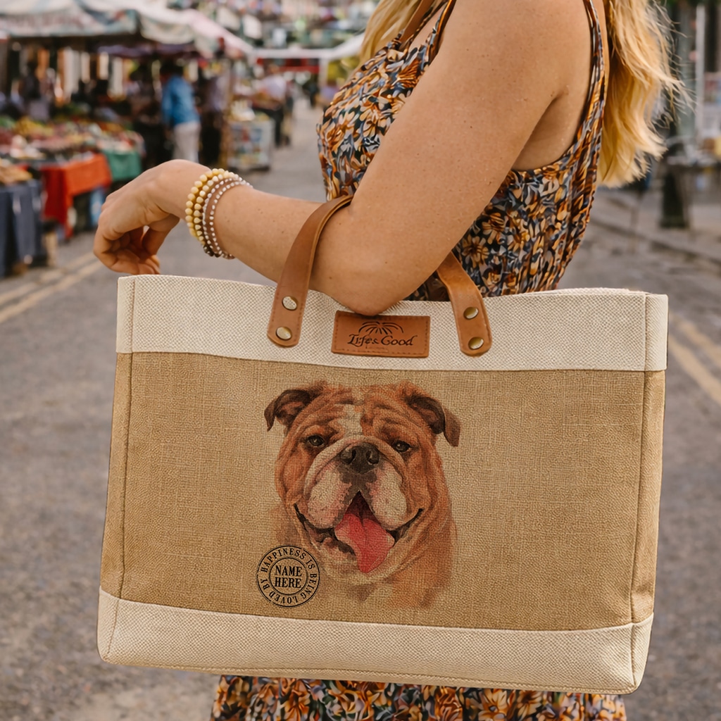 Bulldog Tote Bag Personalised Dog Shopper Handbag KDC06