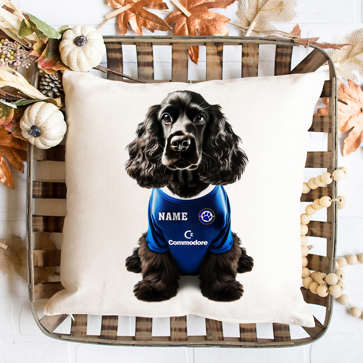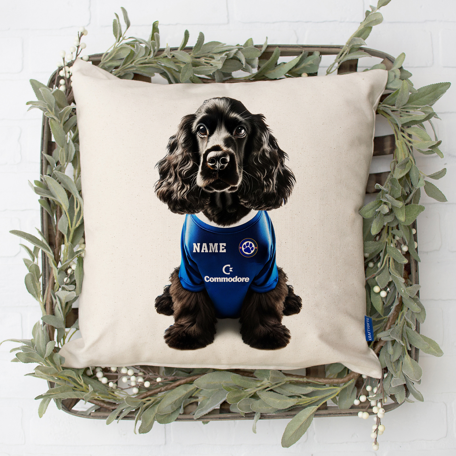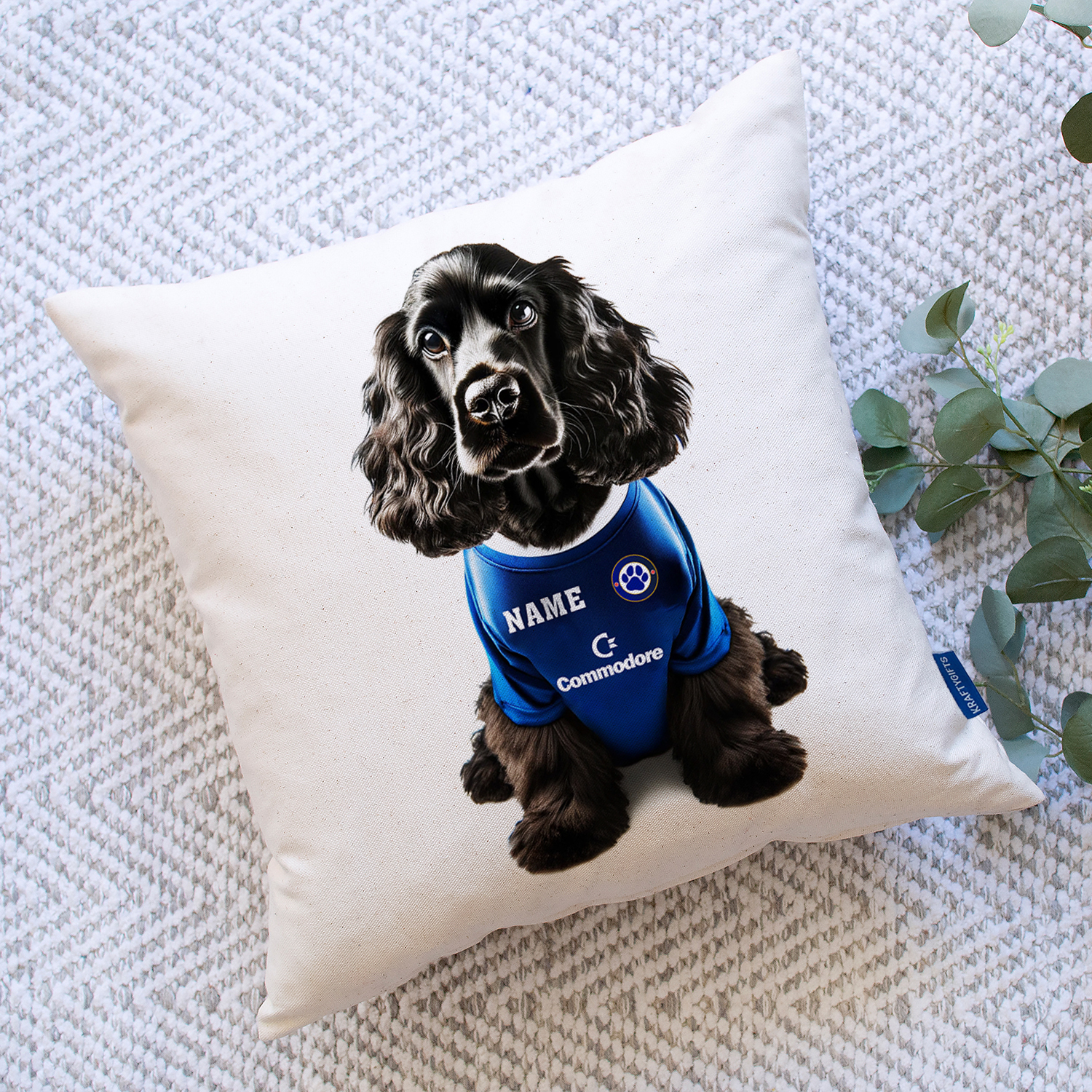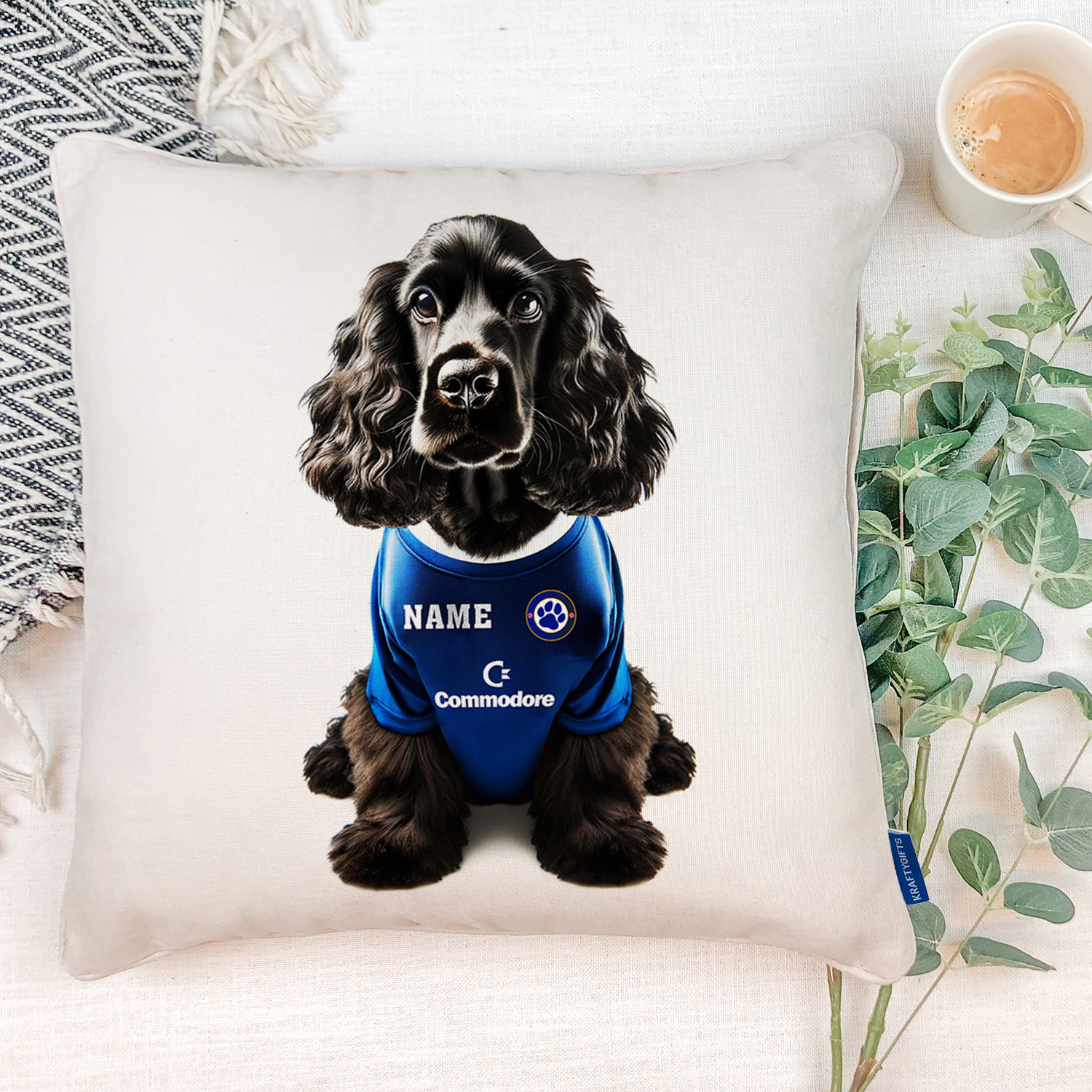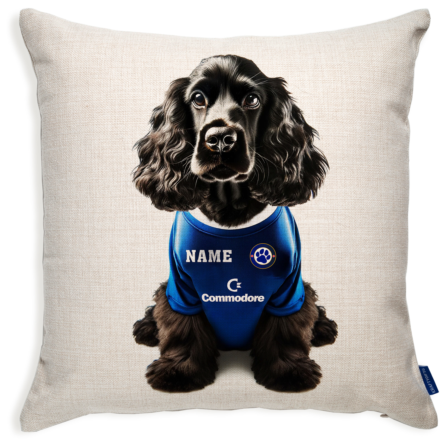 Chelsea Football Black Cocker Spaniel Dog Cushion Personalised Cover DFC162