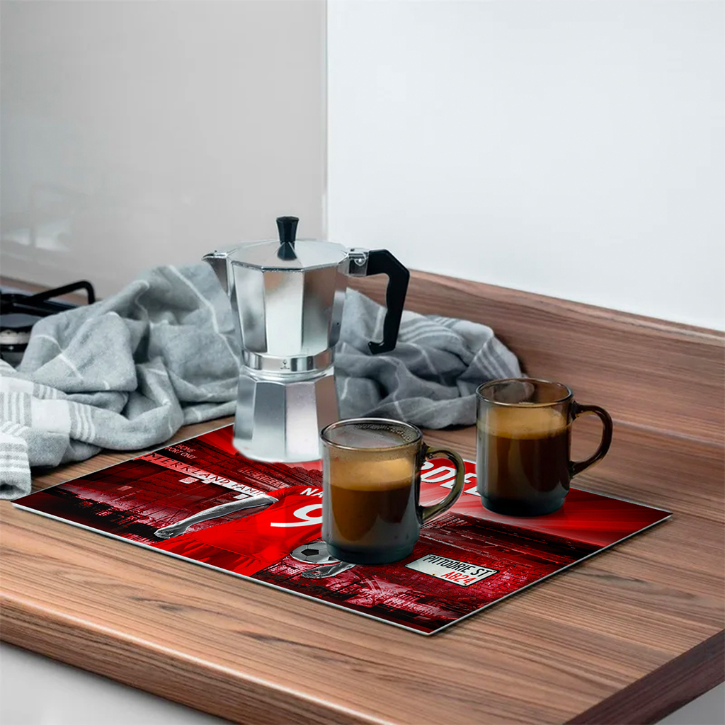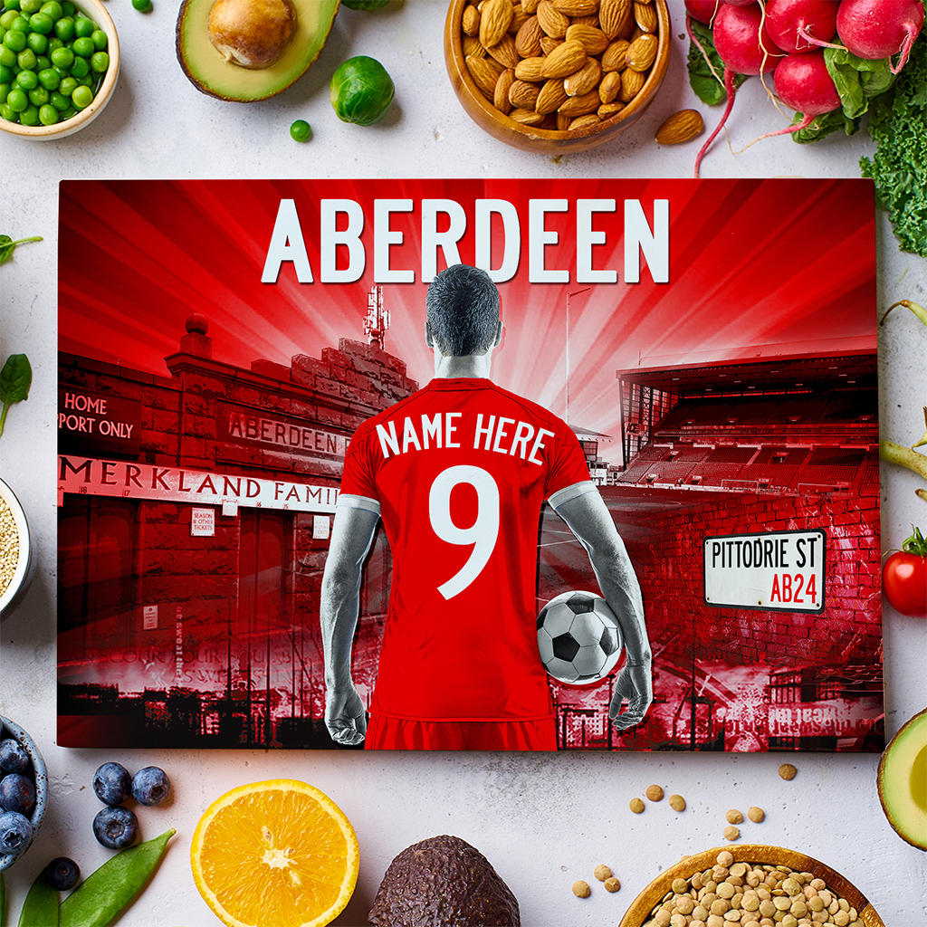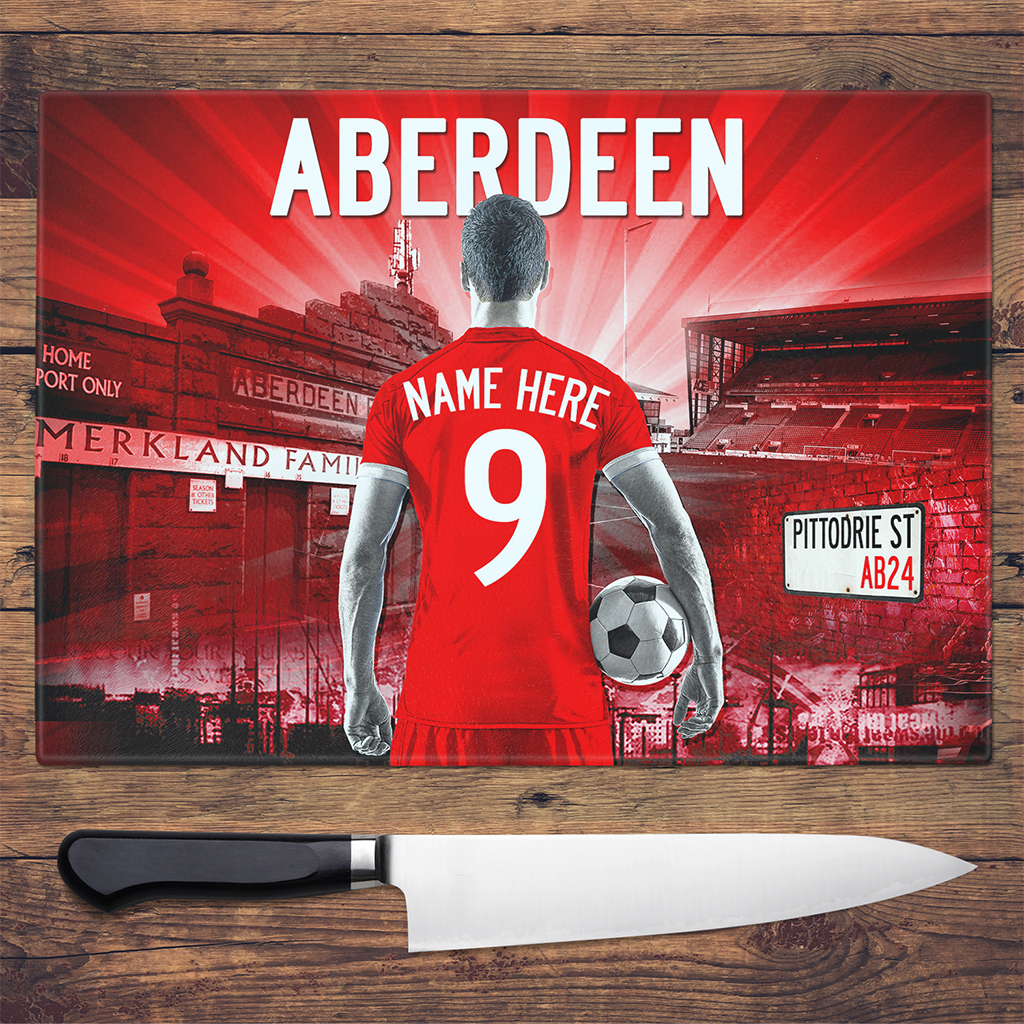 Personalised Aberdeen Football Glass Worktop Saver, the Perfect the Perfect Football Team Fan Gift!