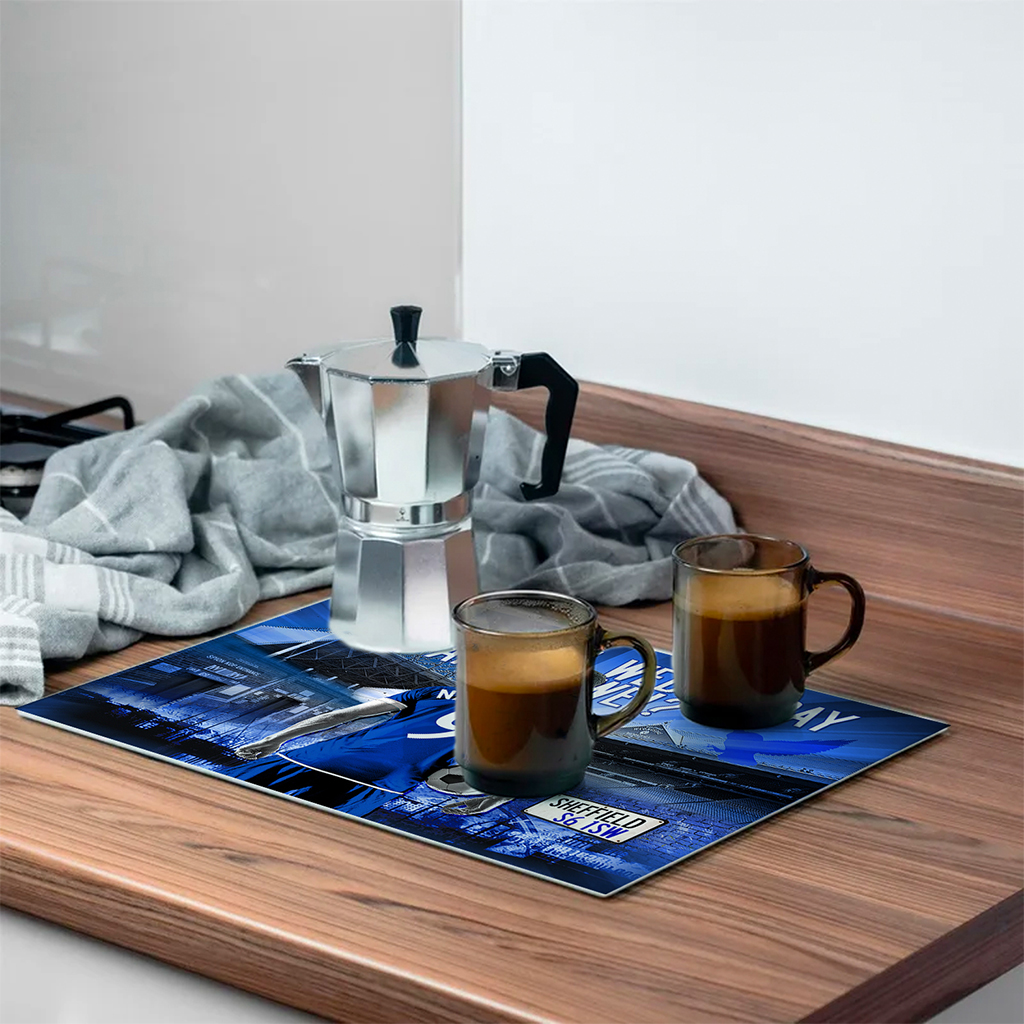 Personalised Sheffield Wednesday Football Glass Worktop Saver, the Perfect the Perfect Football Team Fan Gift!