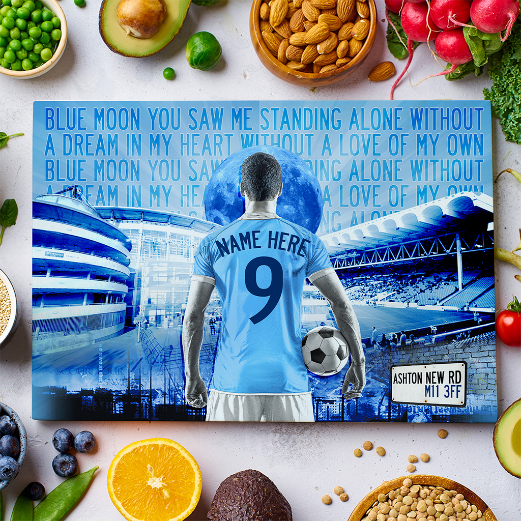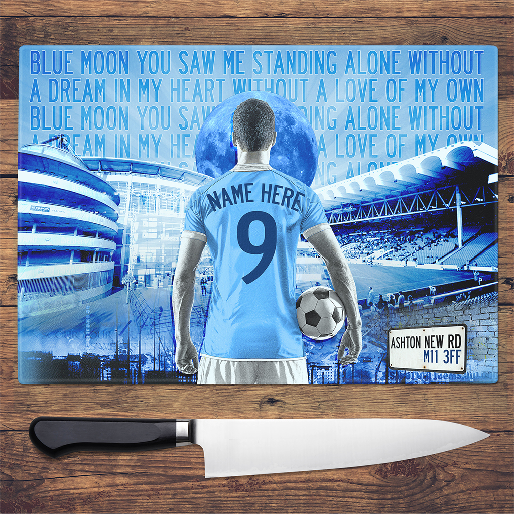 Personalised Manchester City Football Glass Worktop Saver, the Perfect the Perfect Football Team Fan Gift!