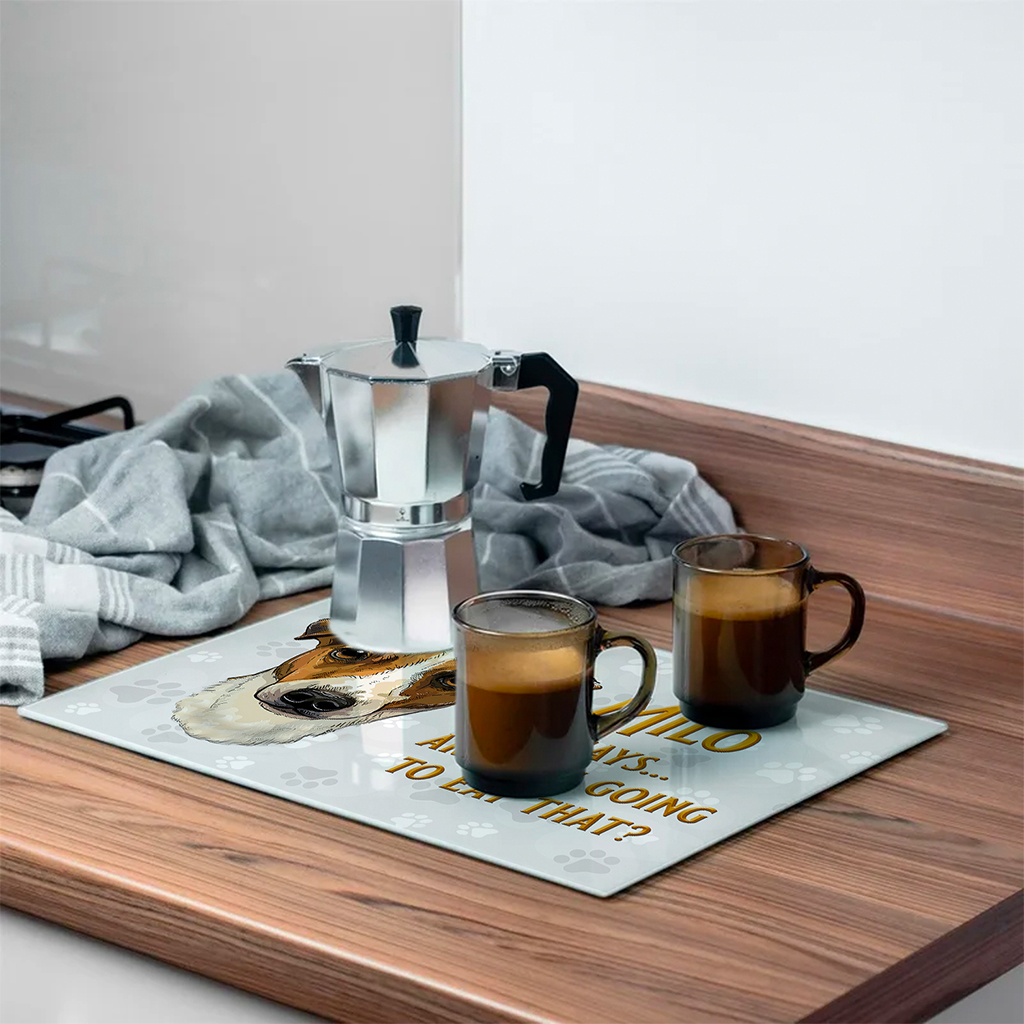 Personalised Jack Russell Dog Glass Worktop Saver, the Perfect Funny Kitchen Gift for any Dog Owner!
