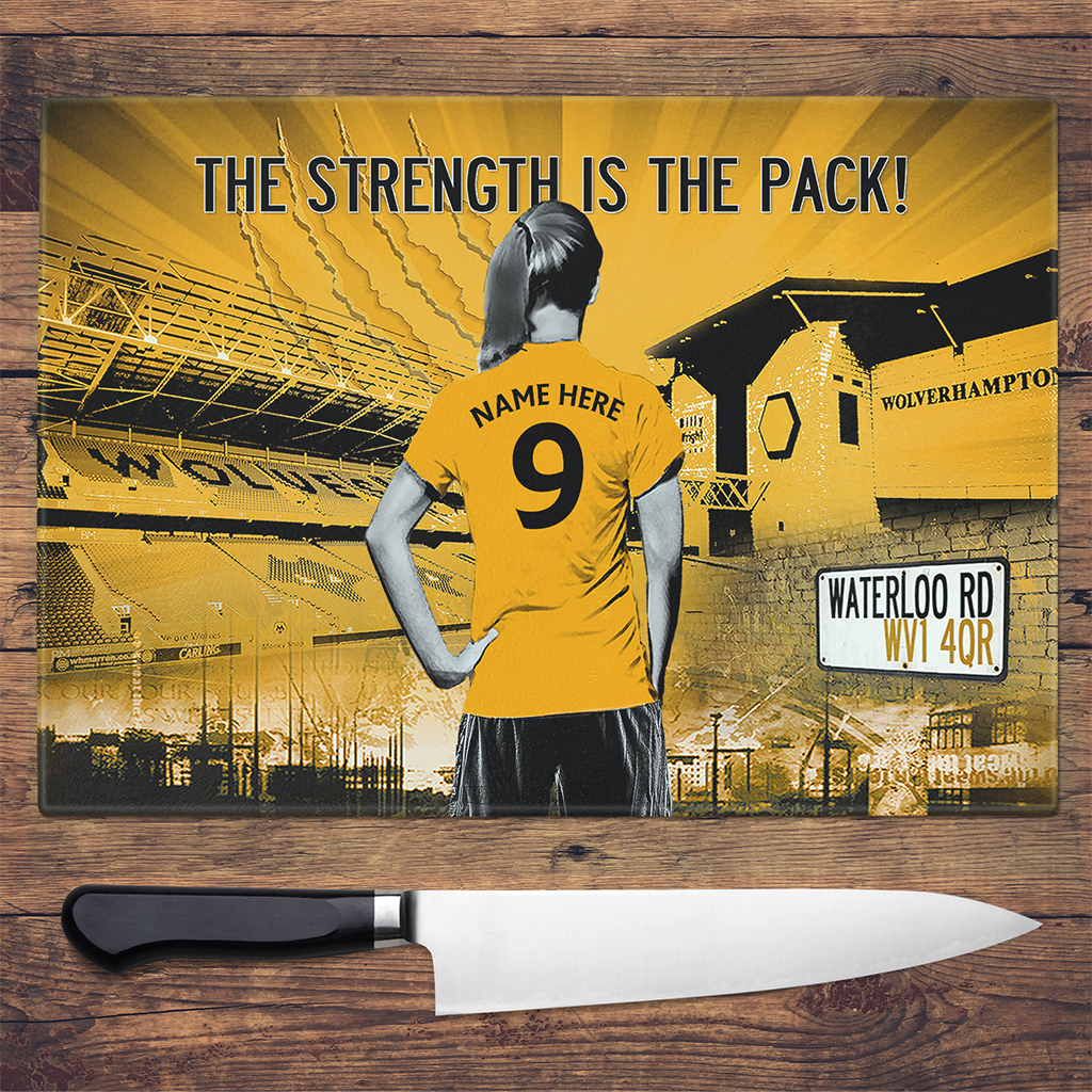 Personalised Wolverhampton Wanderers Women’s Football Chopping Board WFP134