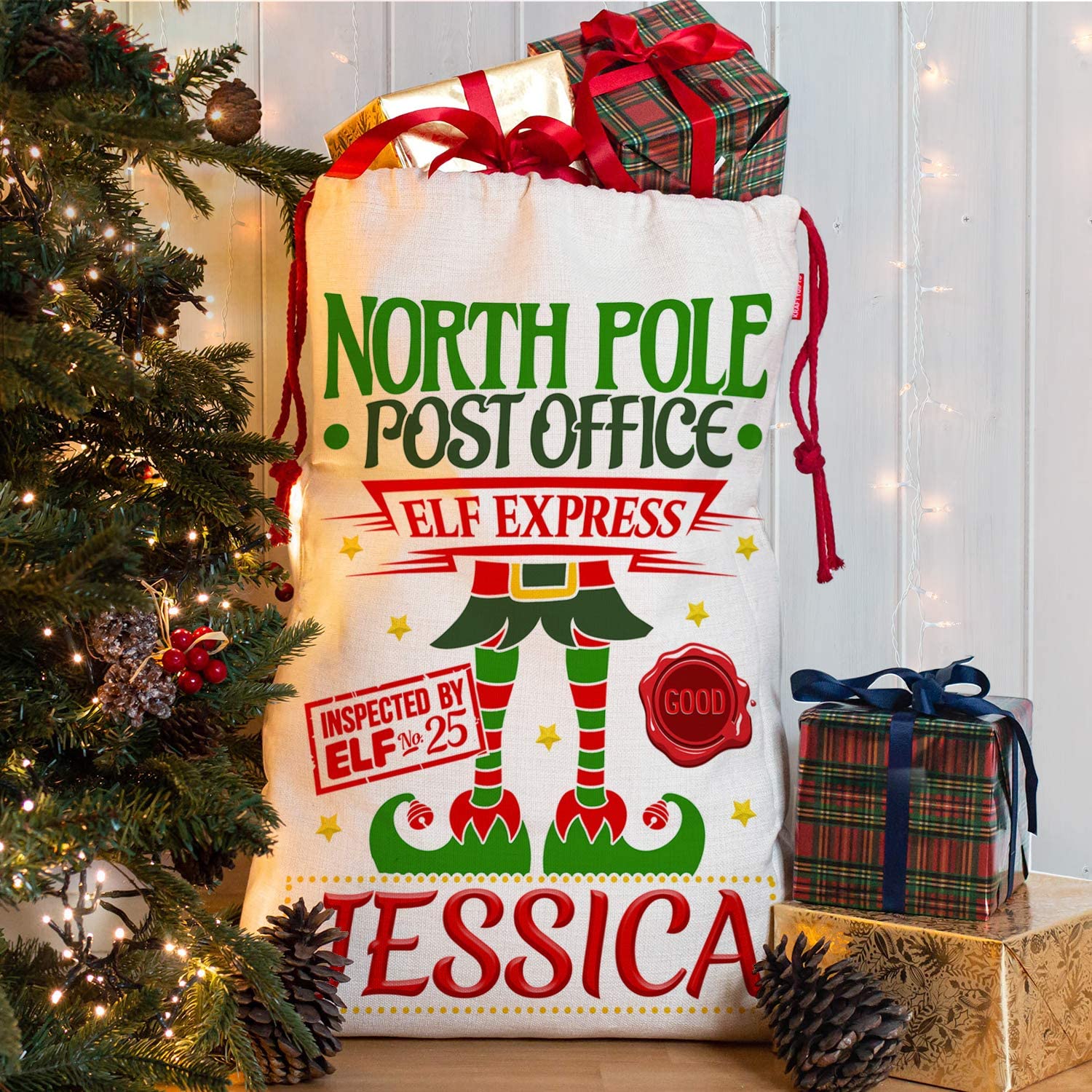 Personalised Elf Express Santa Christmas Sack — an ideal festive gift for the holidays.