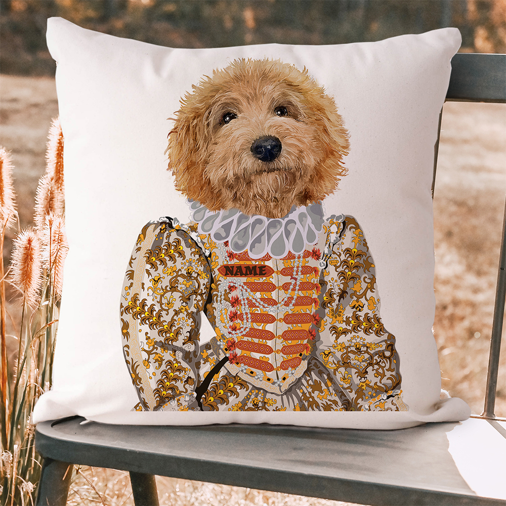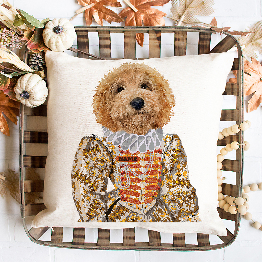 Our personalised blonde doodle dog cushion covers are the perfect gift for any occasion including birthdays and housewarming. The Victorian inspired throw pillows are the ideal gift for Mother’s Day, for dog mom, dog dad and any puppy family.