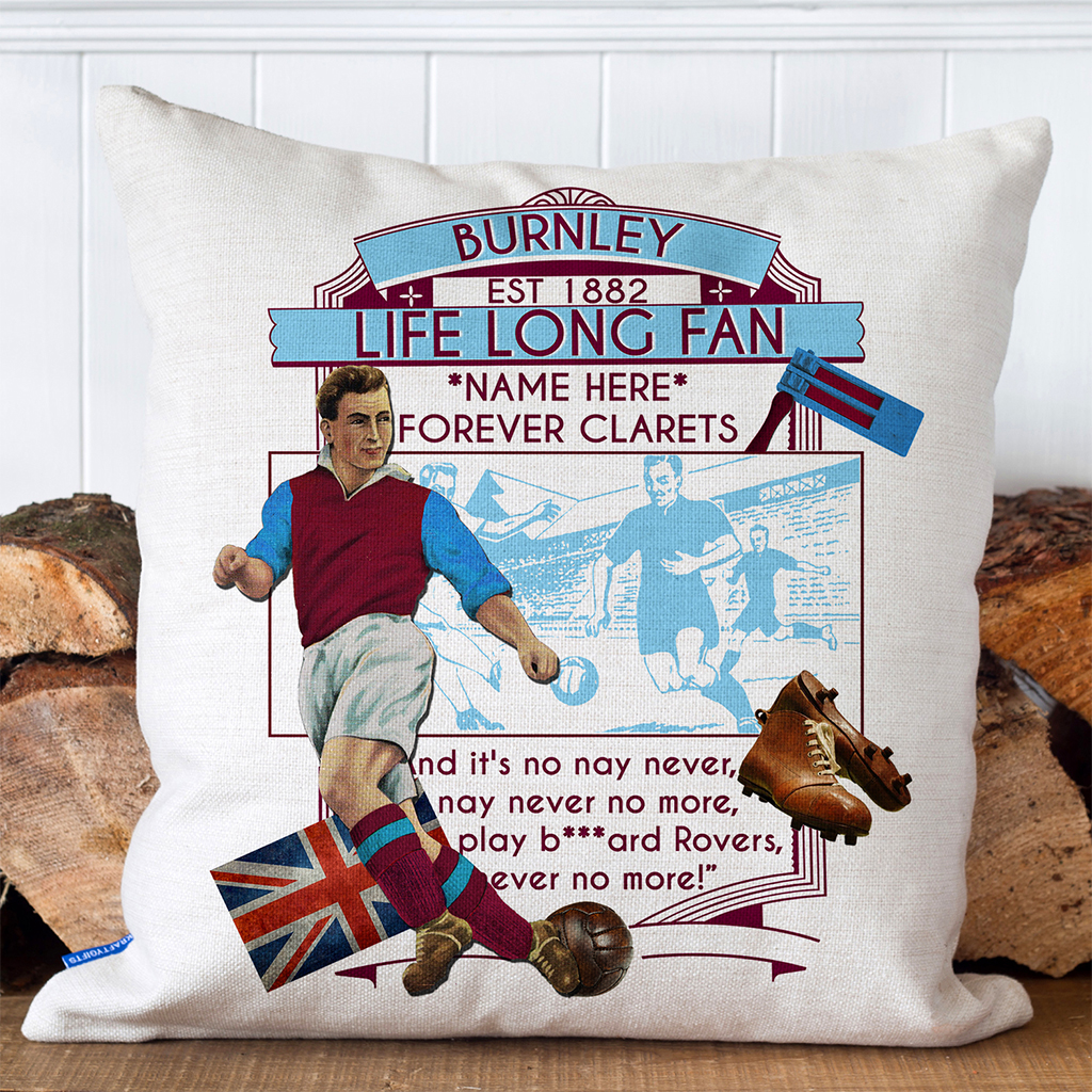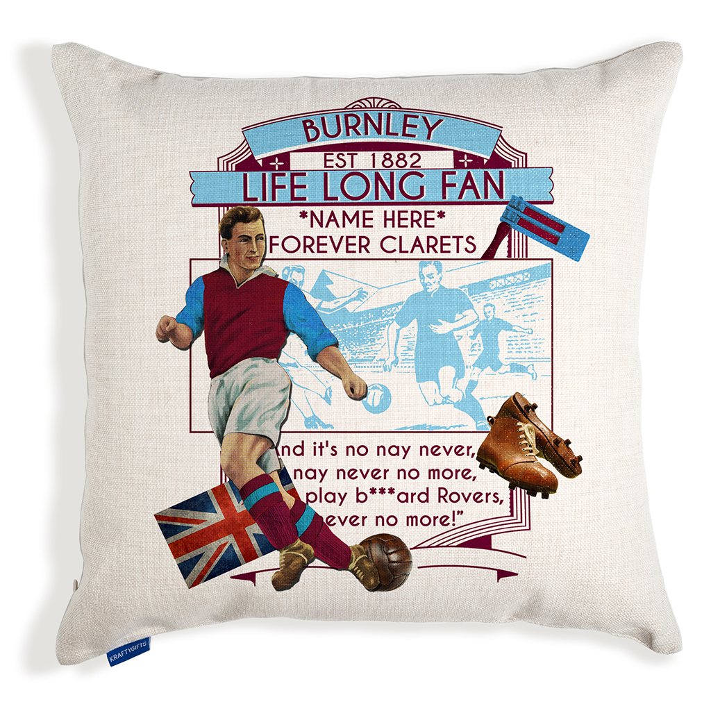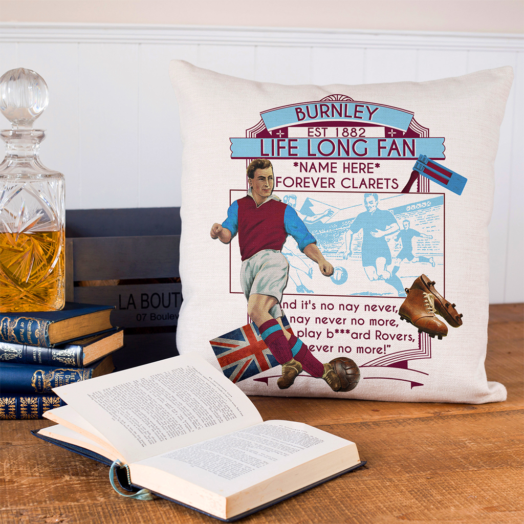 Personalised Burnley Football Cushion Cover, the Perfect Vintage Football Team Fan Gift!