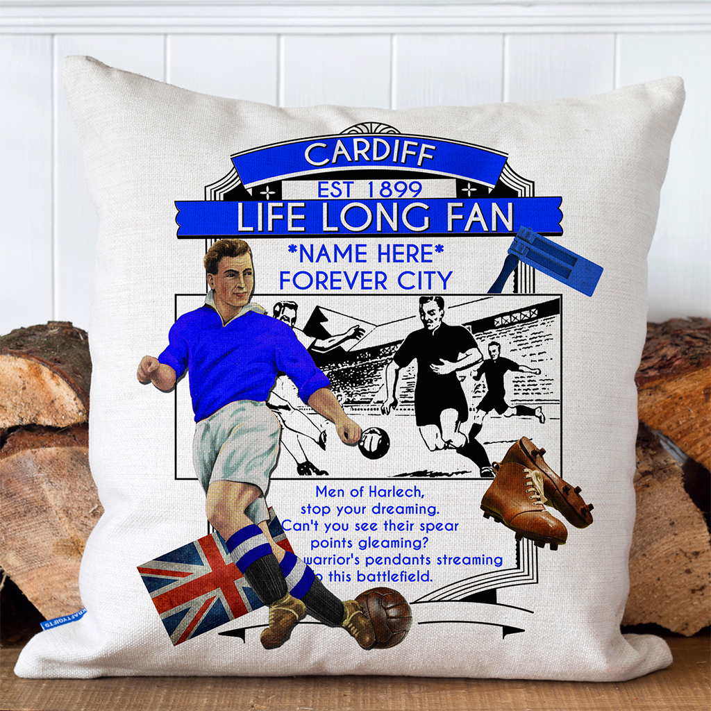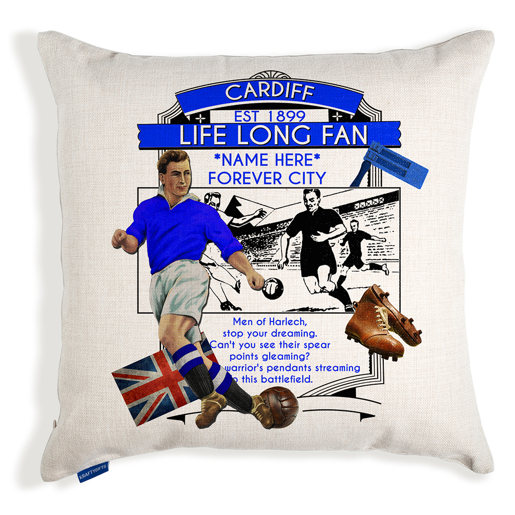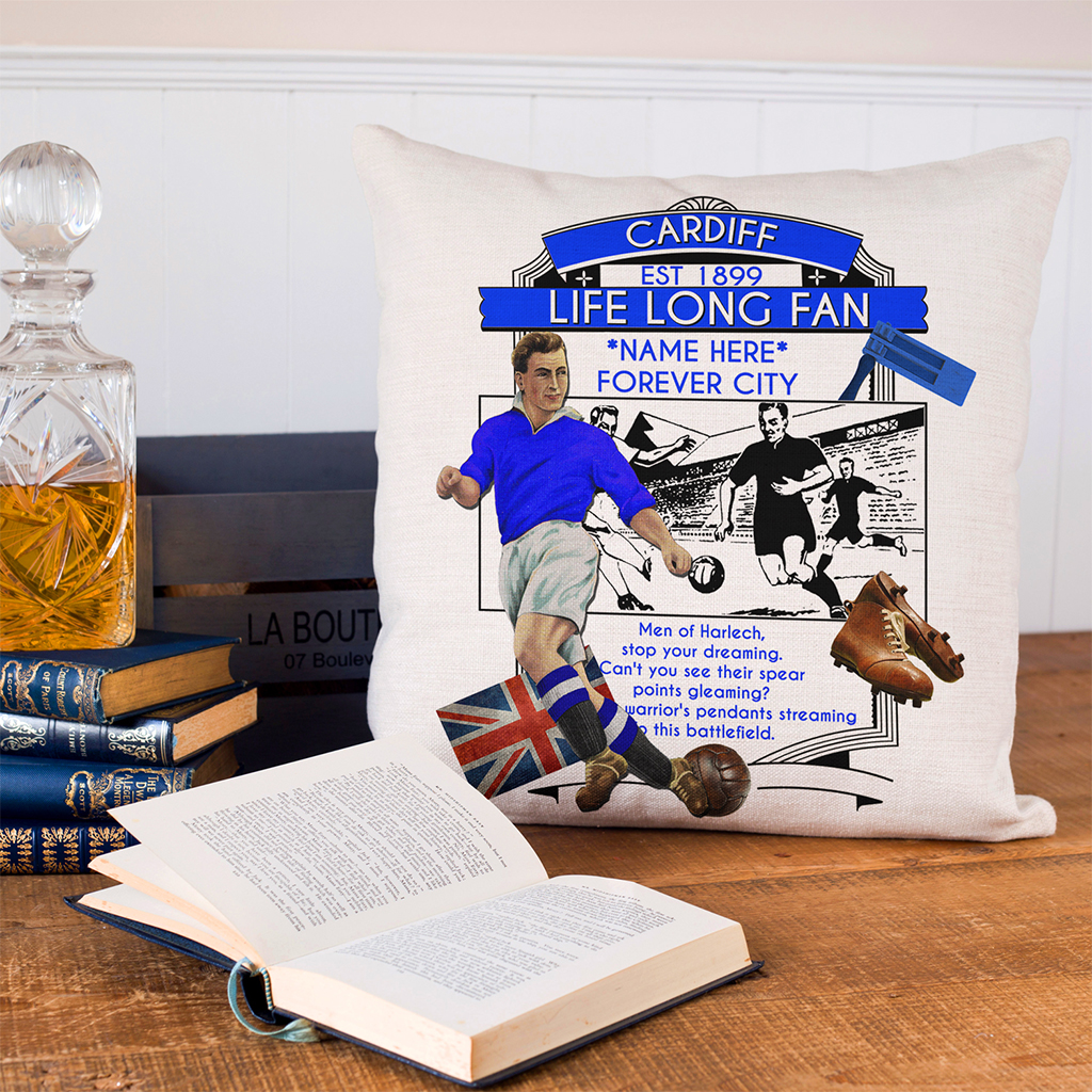Personalised Cardiff Football Cushion Cover, the Perfect Vintage Football Team Fan Gift!