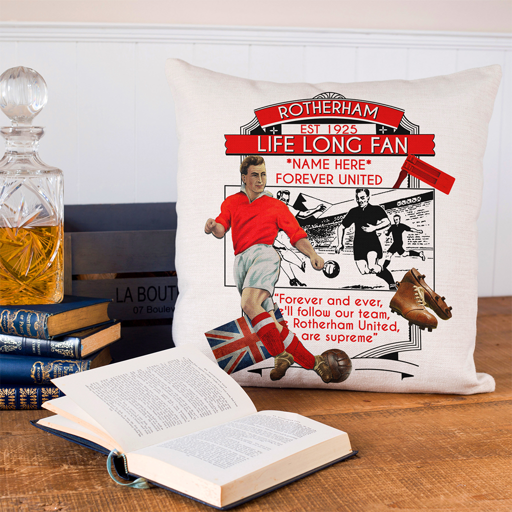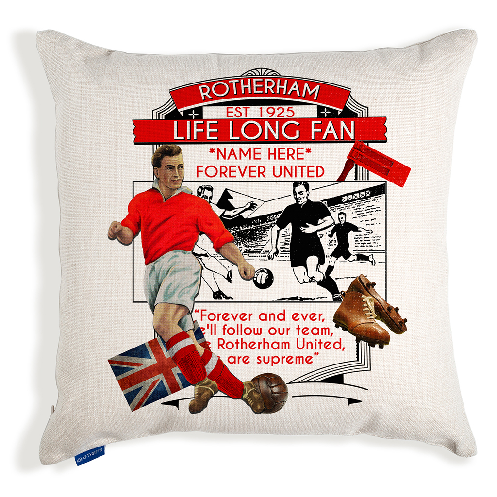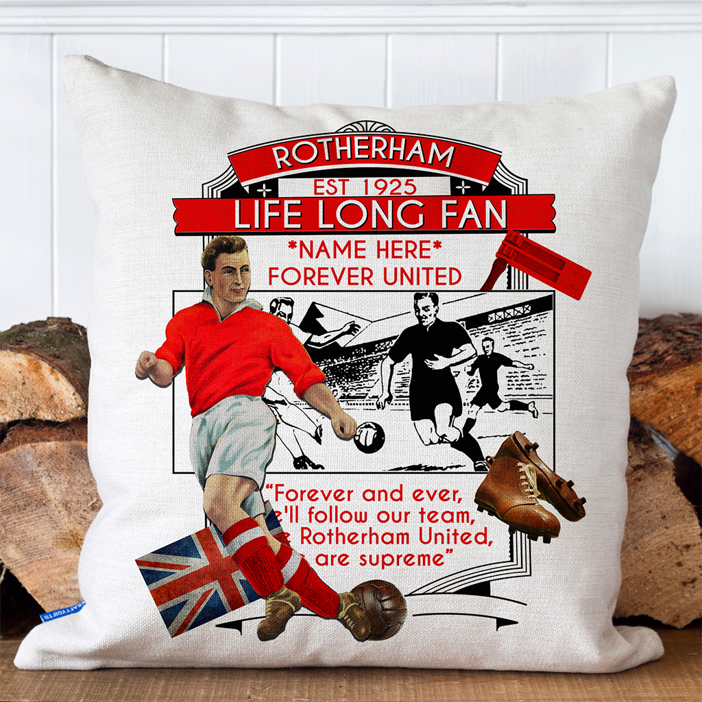 Personalised Rotherham Football Cushion Cover, the Perfect Vintage Football Team Fan Gift!
