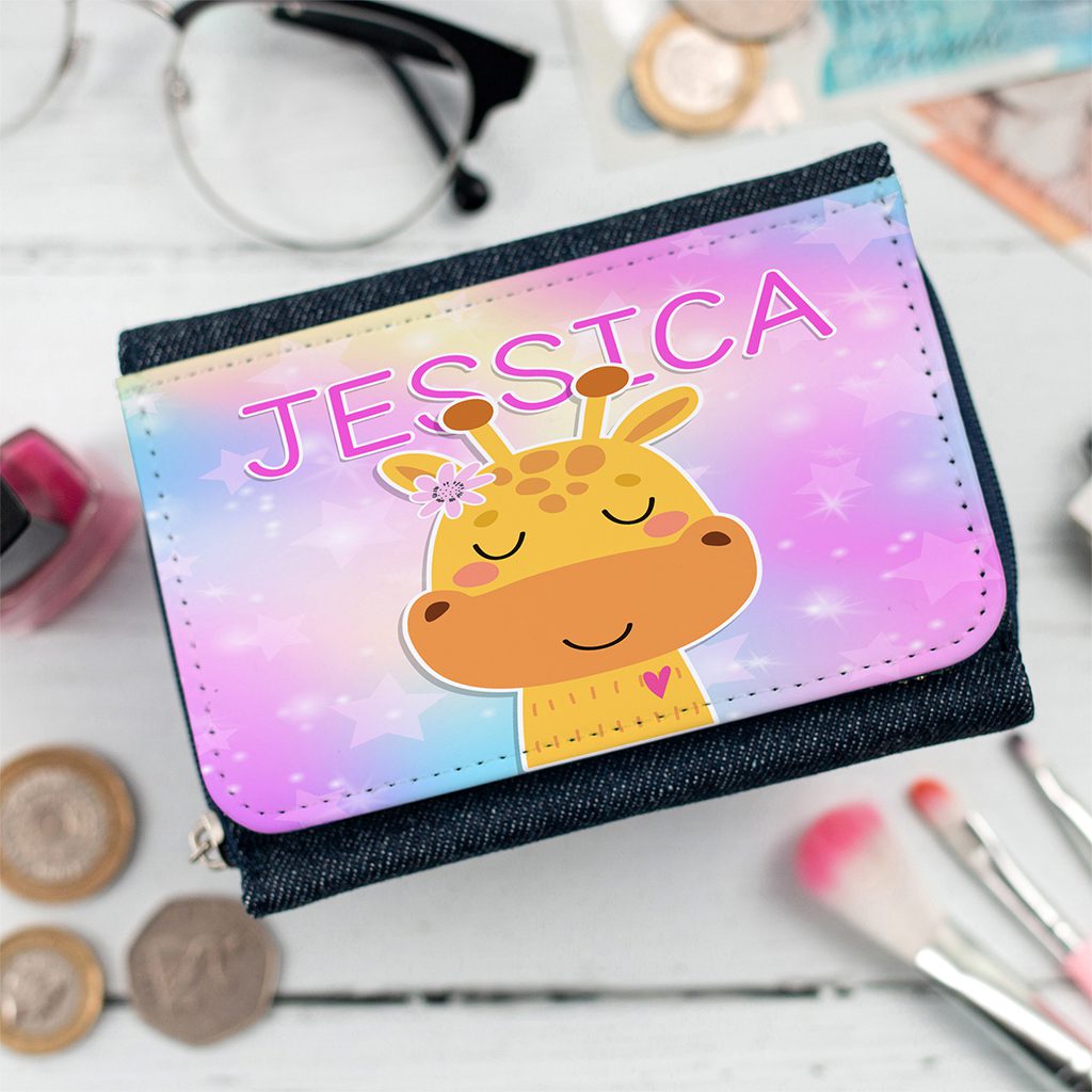 Personalised Cute Giraffe Kids Denim Purse KKP40A