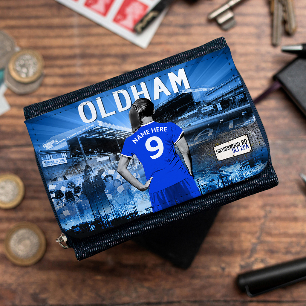 Personalised Oldham Women’s Football Money Purse, the perfect Football Team Fan Gift!