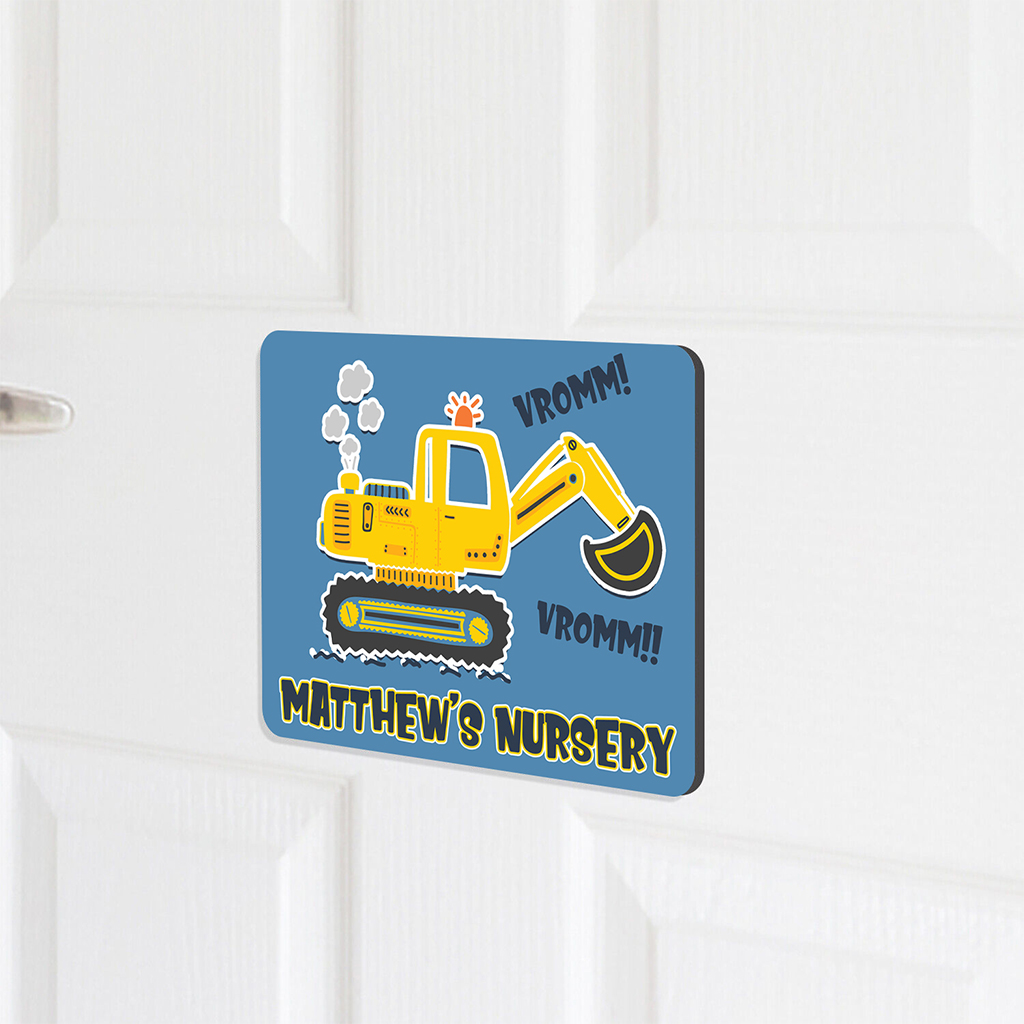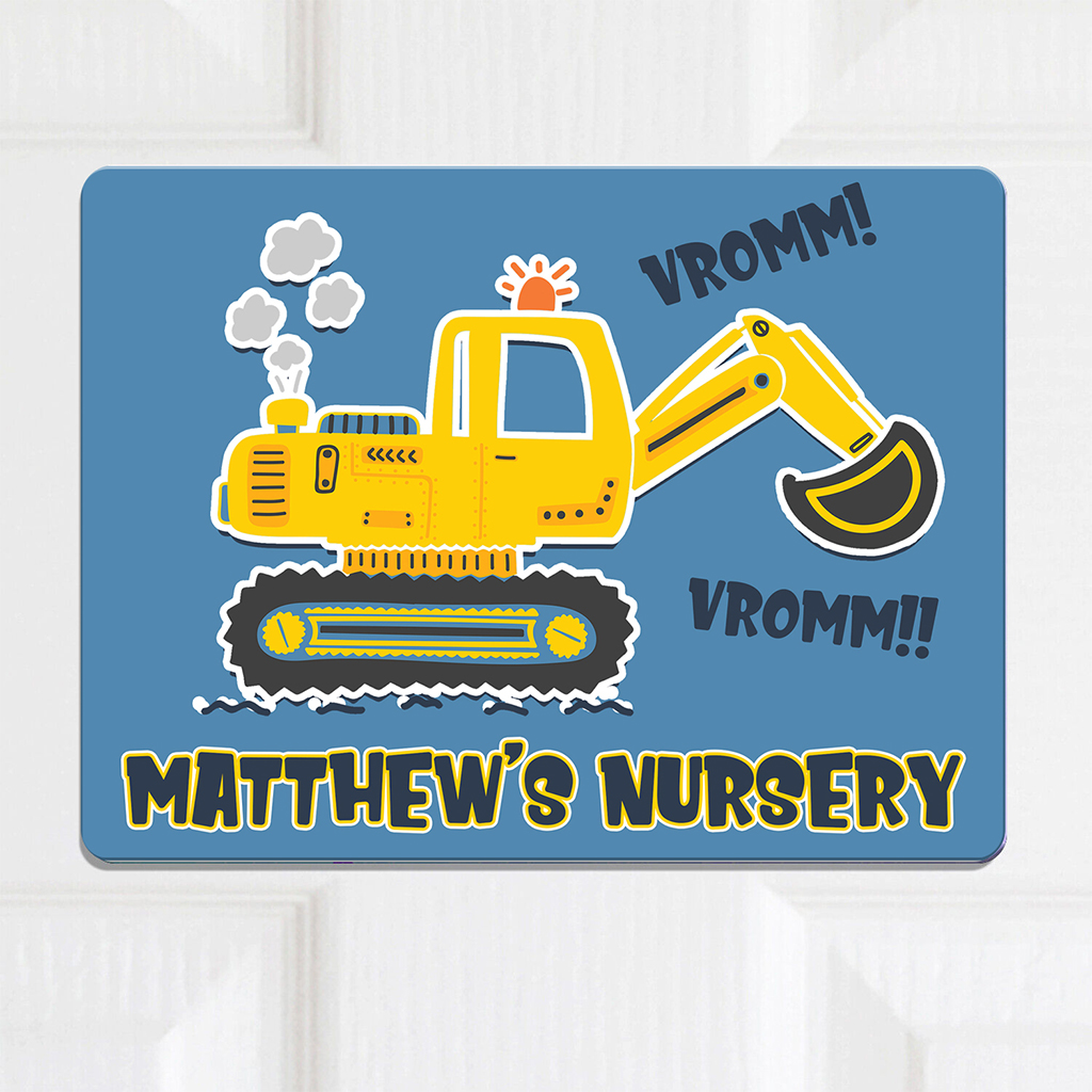 Personalised Builder Digger Children’s Nursery Bedroom Door Sign, the perfect Newborn Gift!