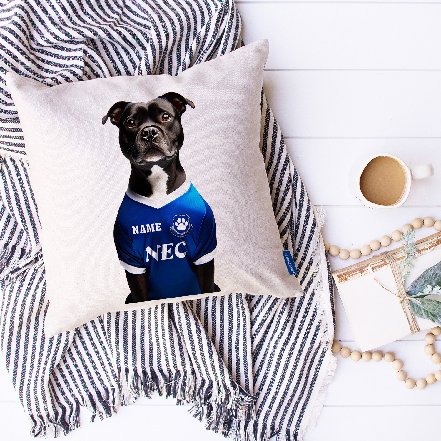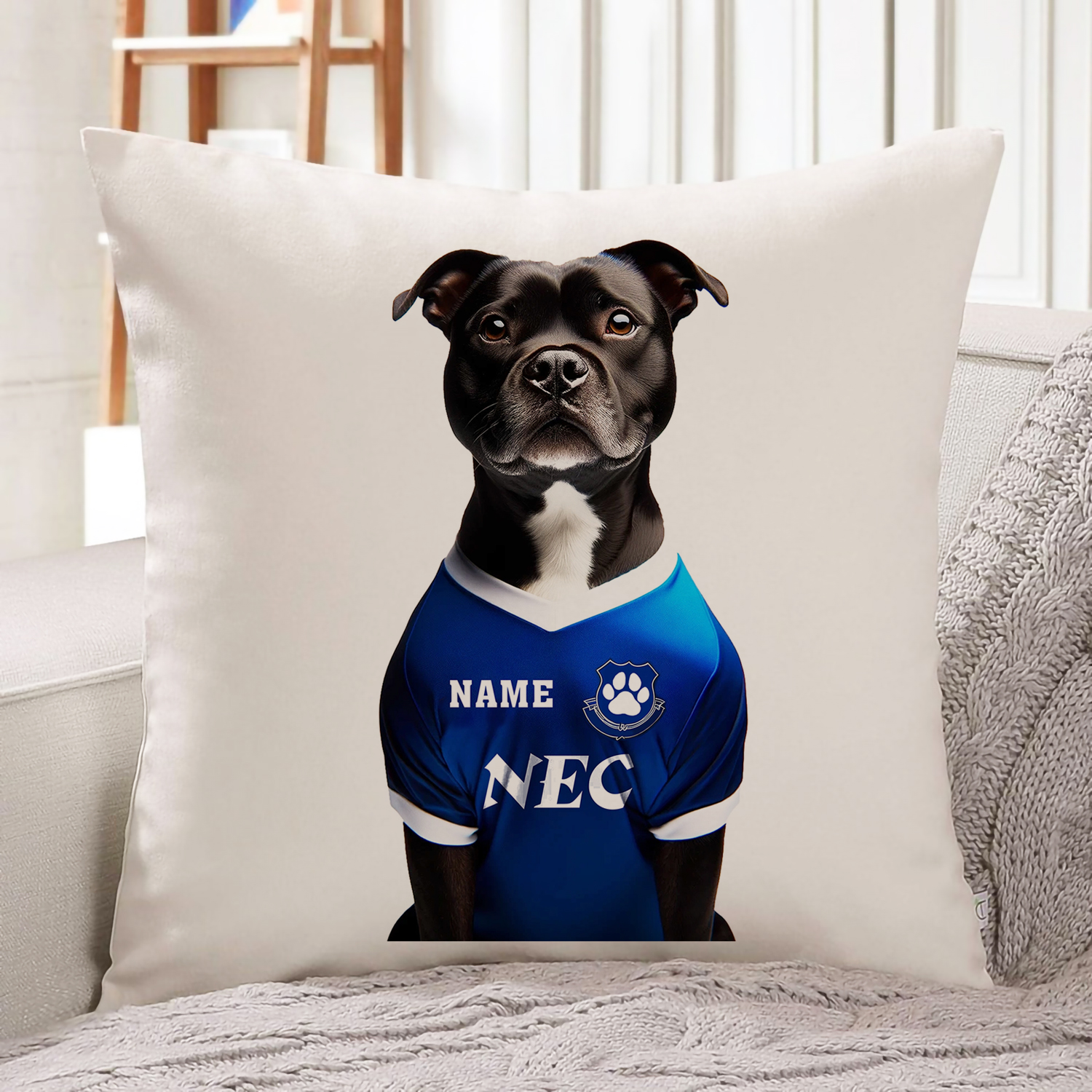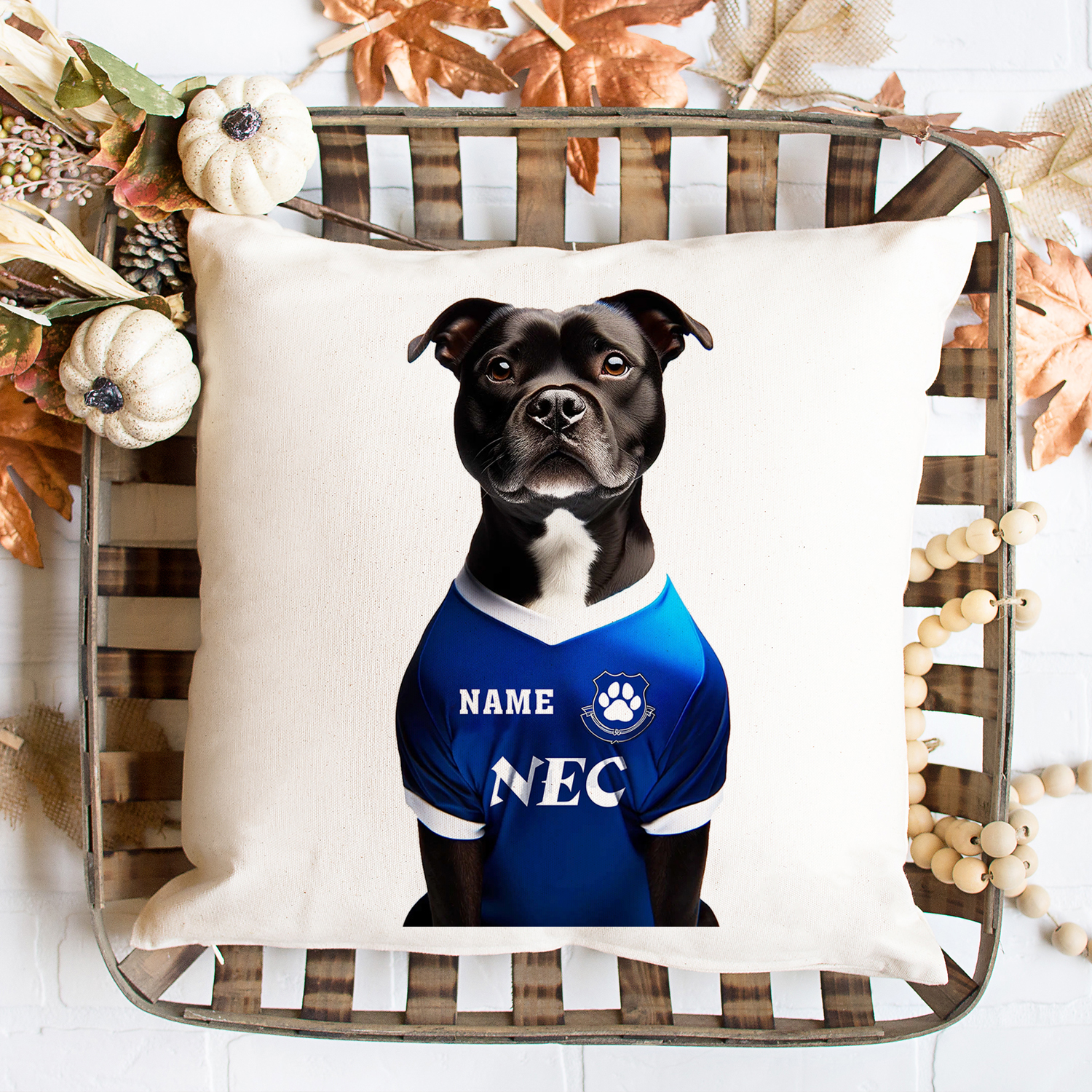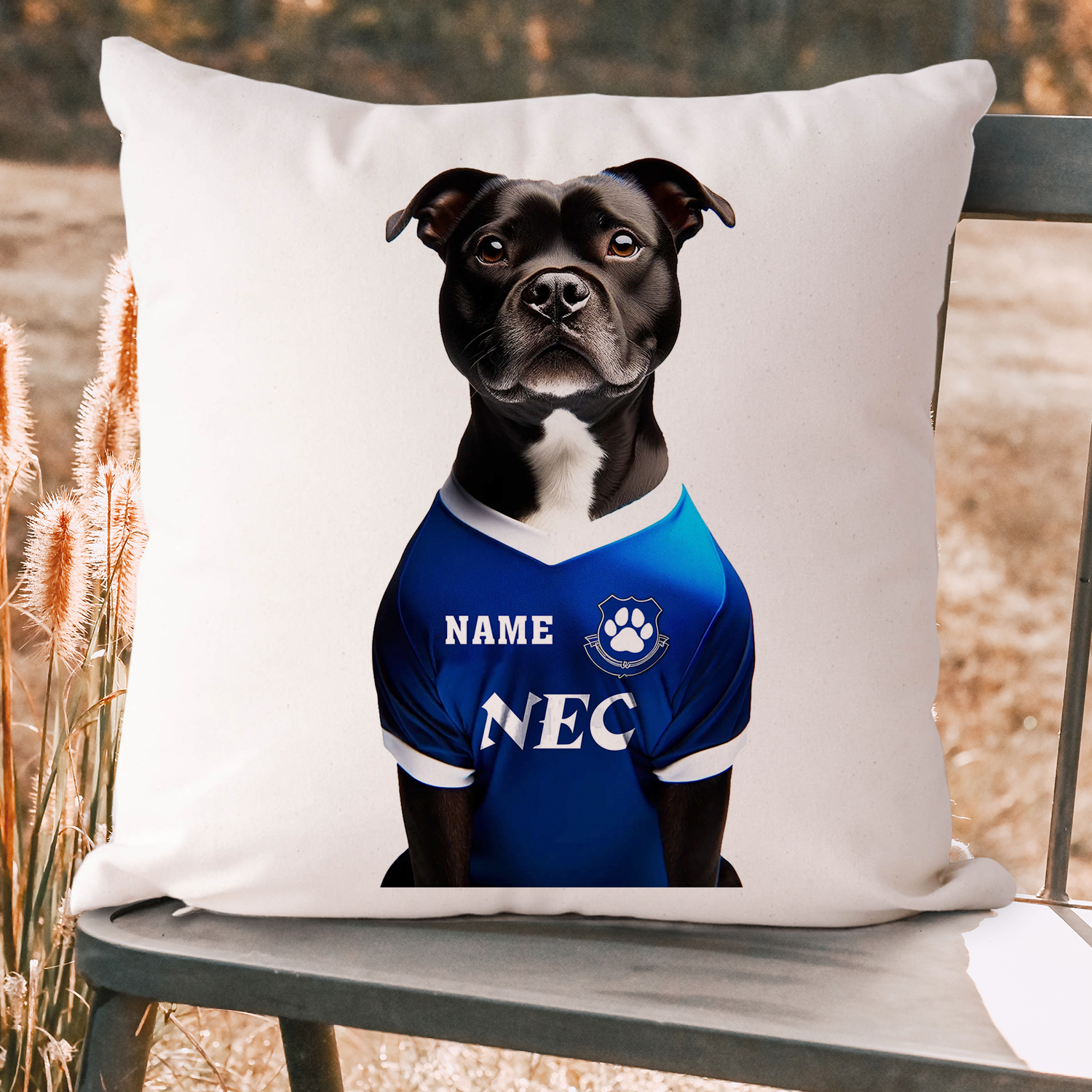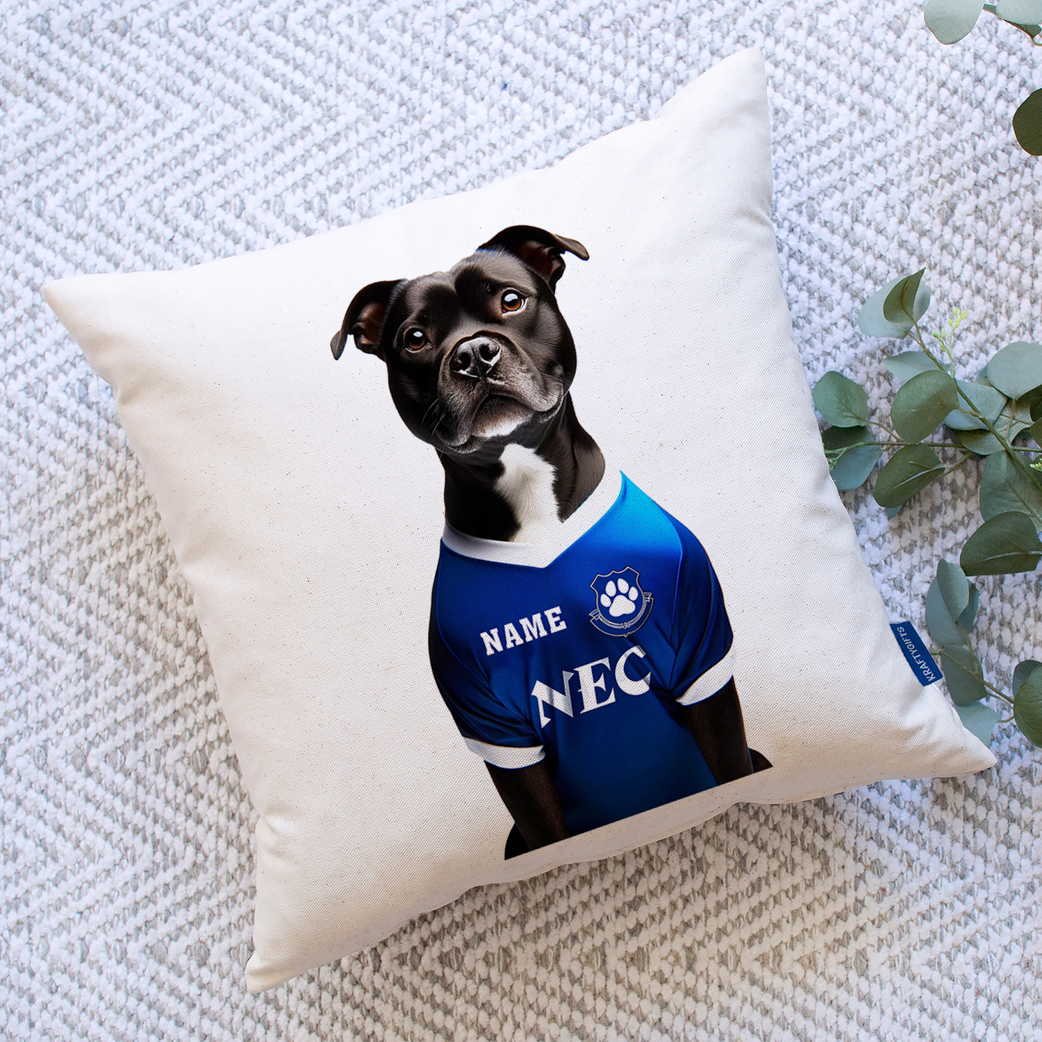 Everton Football Black Staffy Dog Cushion Personalised Cover DFC101