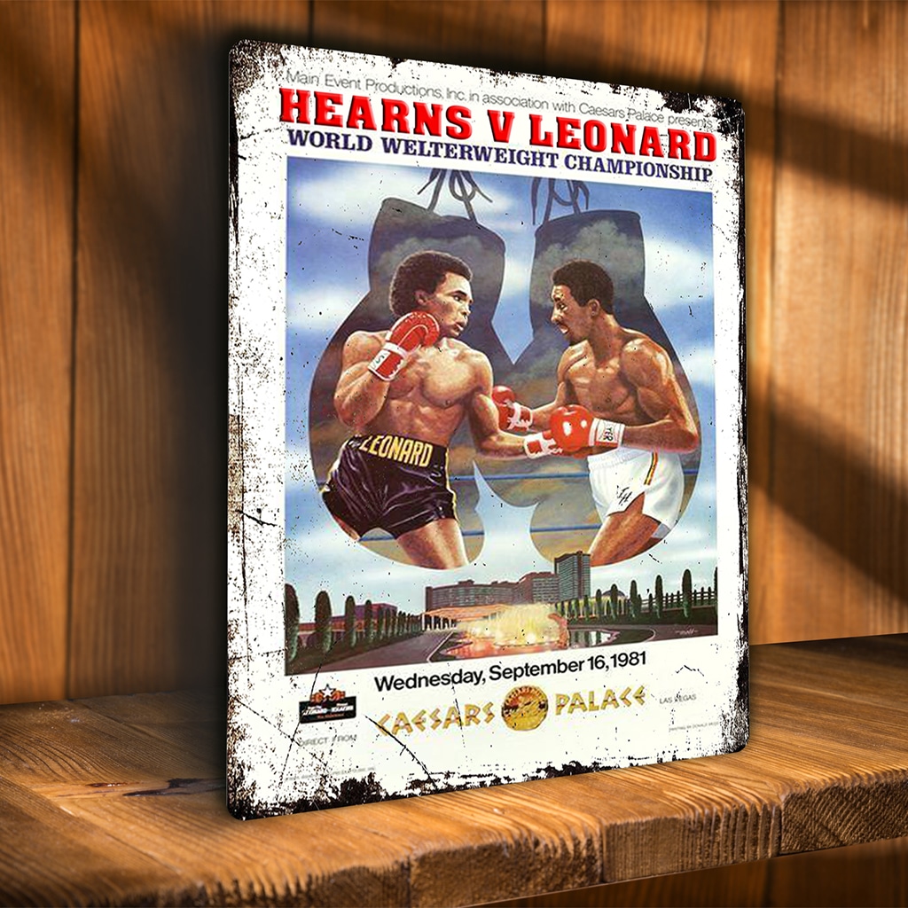 Hearns v Leonard Boxing Match Metal Wall Sign is the perfect gift for any boxing fan.