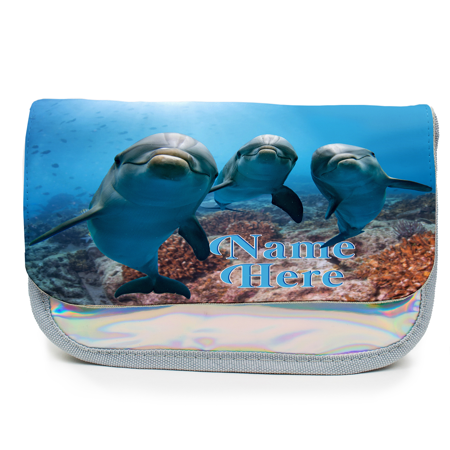 Personalised Dolphin Kids Silver Pencil Case KS01