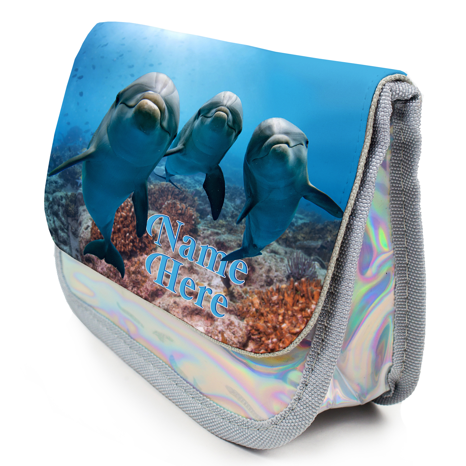 Our personalised dolphin carry is an ideal make up and accessory bag.