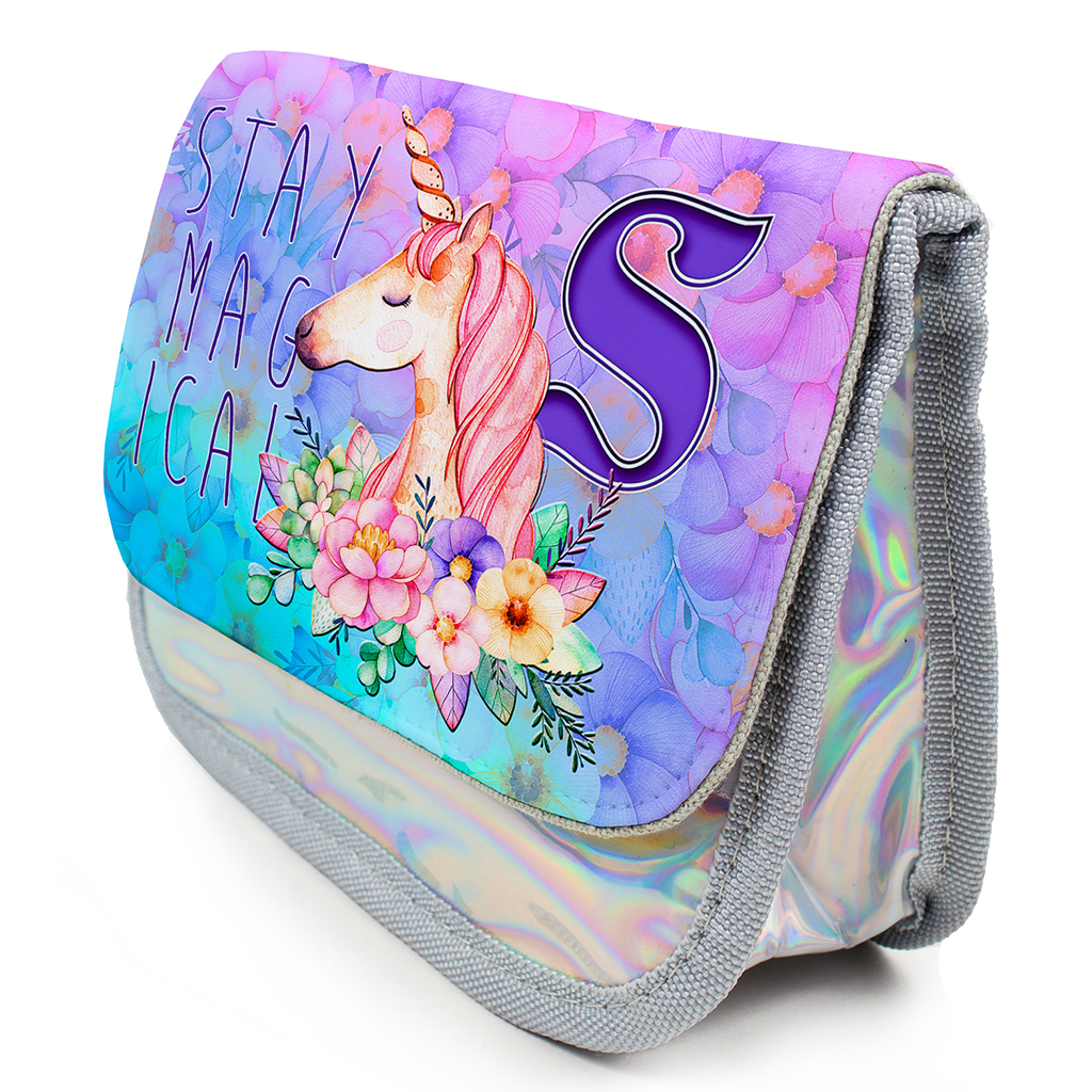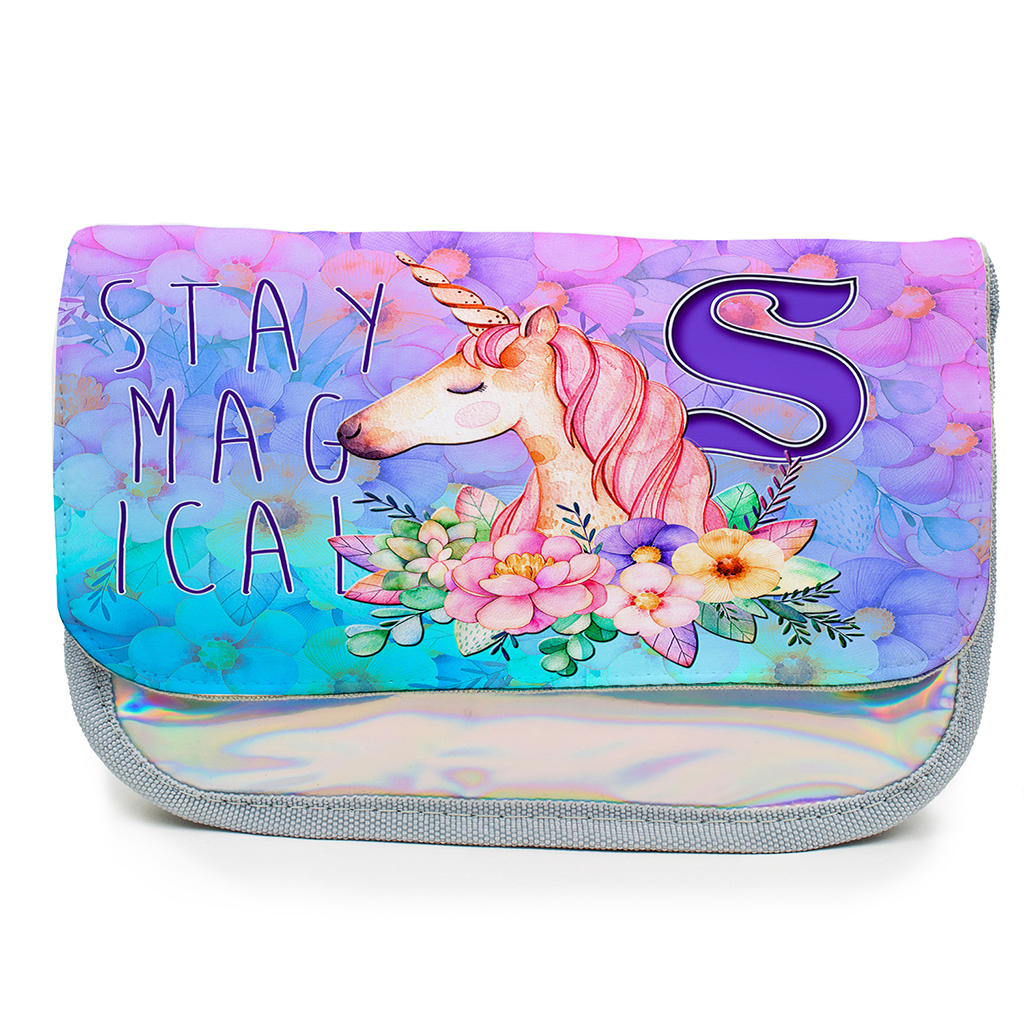 Personalised Unicorn Stay Magical Kids Silver Pencil Case KS31