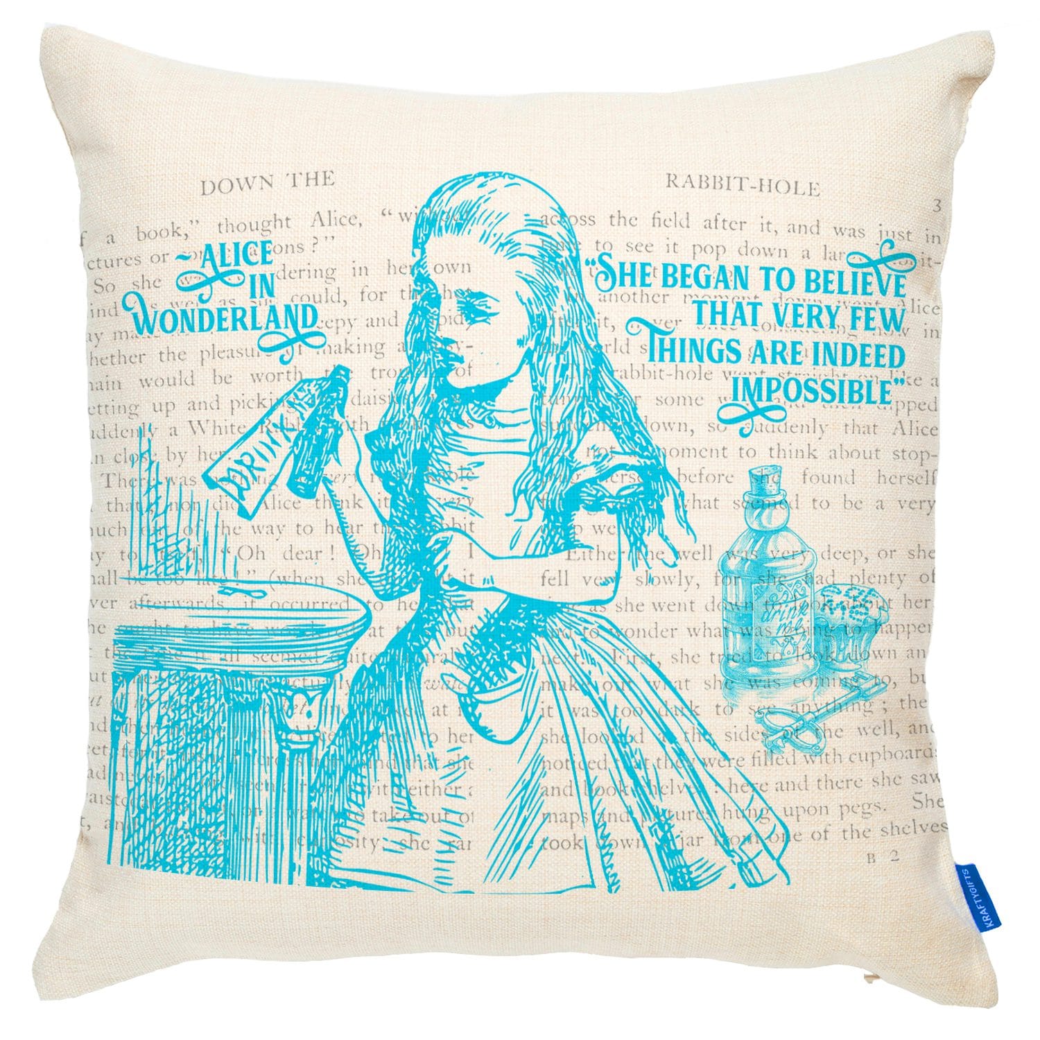 Drink Me Alice in Wonderland Cushion Cover ABC03