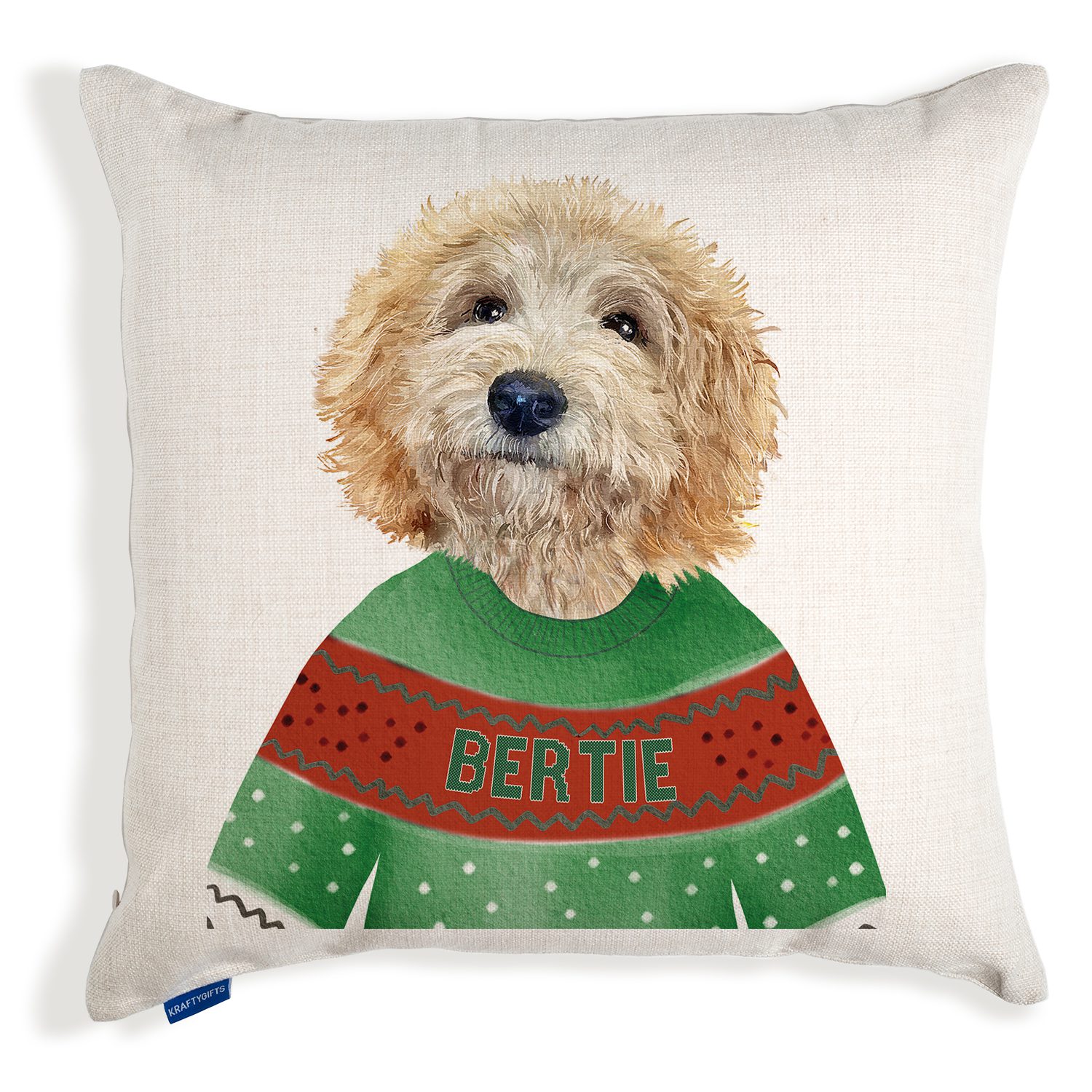 Our personalised Cockapoo dog cushion covers in Christmas jumpers make the perfect Christmas gift. The Xmas inspired throw pillows are the ideal gift for any dog mom, dog dad and any puppy family.