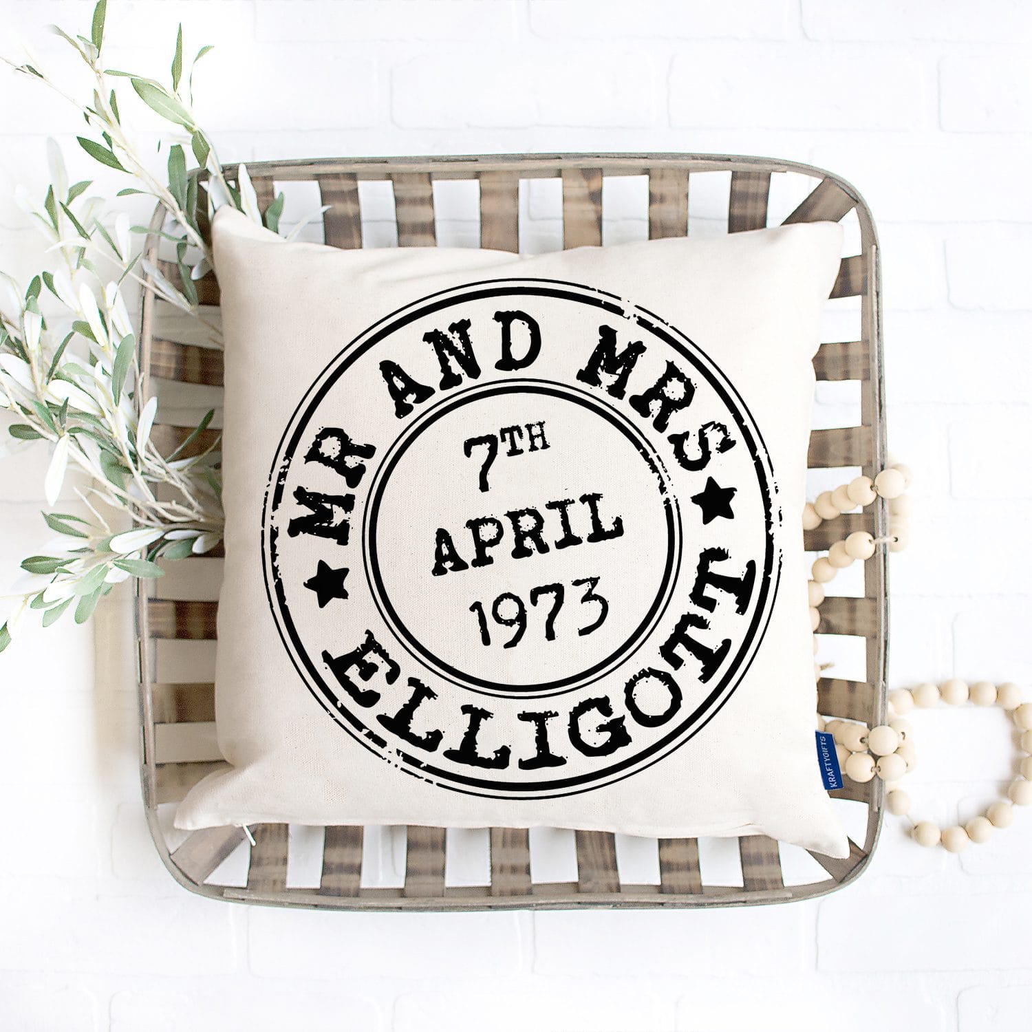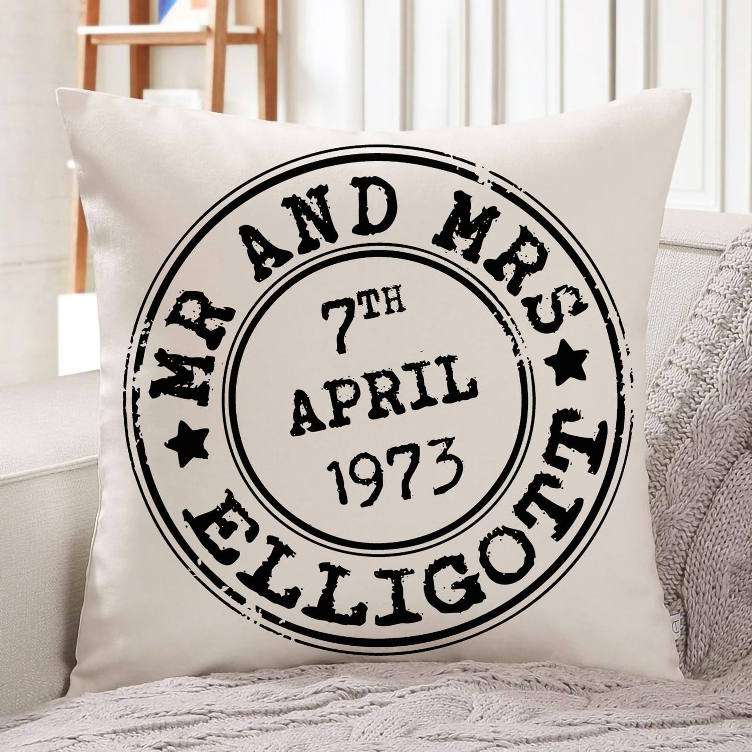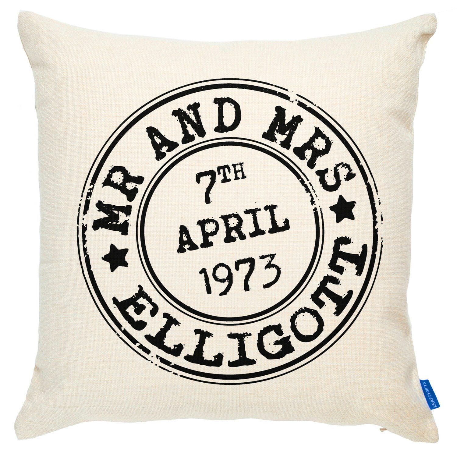 Personalised Mr & Mrs Wedding Stamp Vintage Cushion Cover KC35