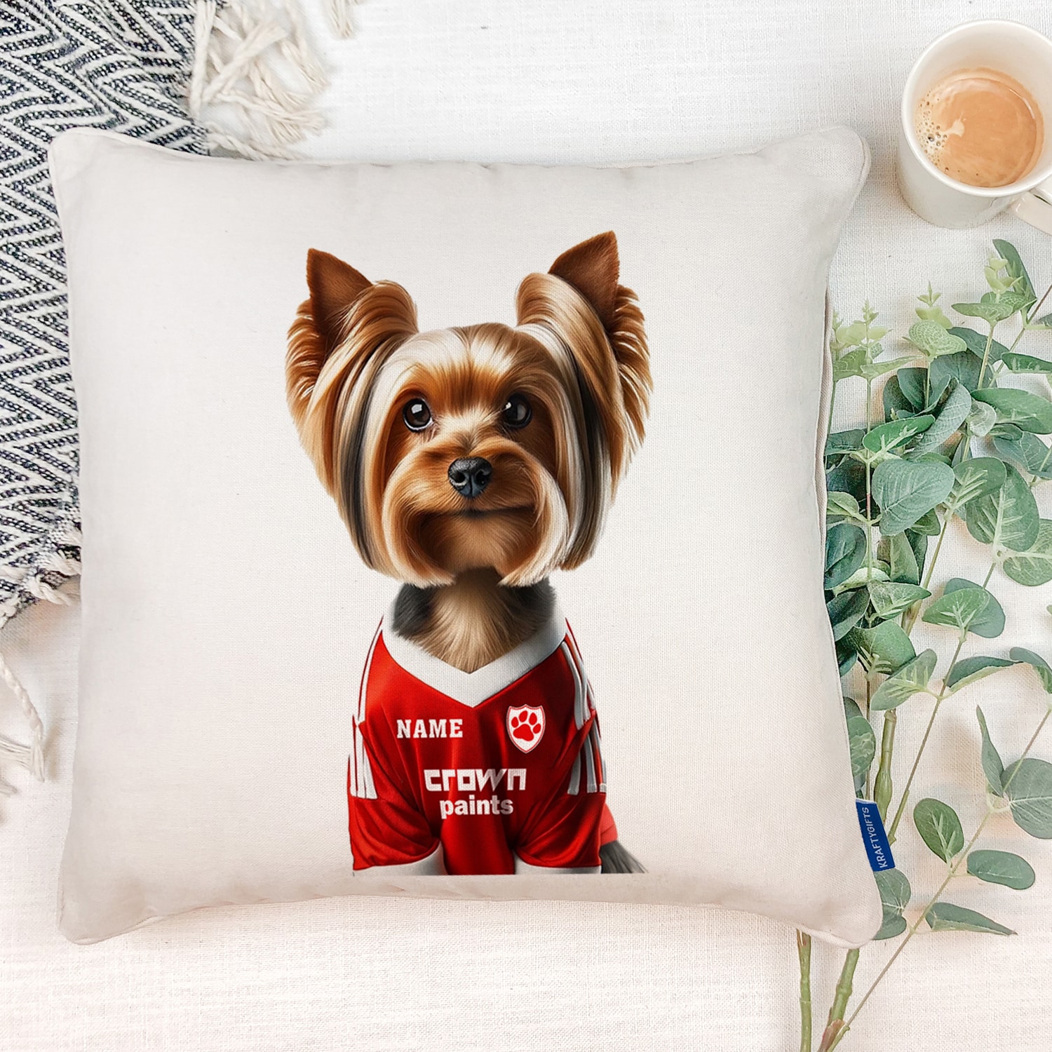 Personalised Dog Football Cushion Cover, the Perfect Football Team Fan Gift!