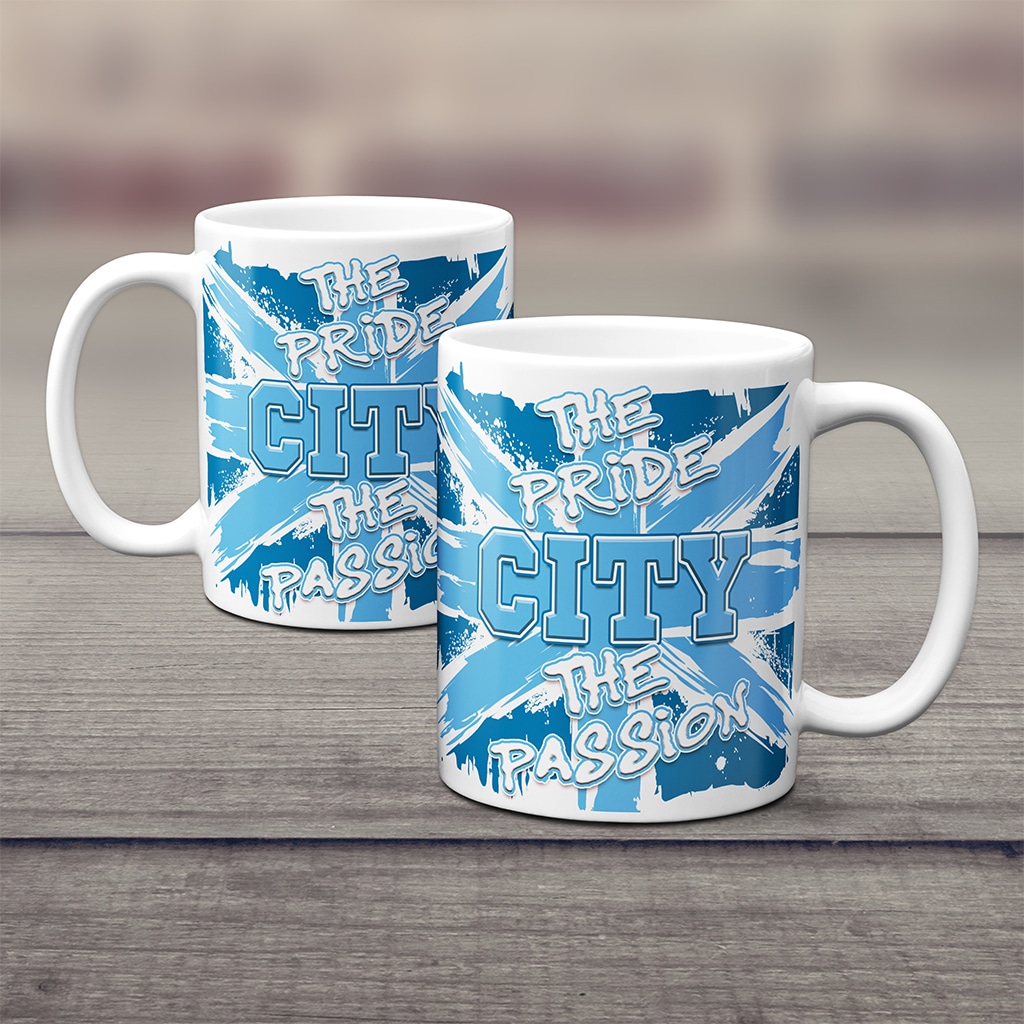 Our Pride & Passion Manchester City Football Mug is handmade to order. With a striking coloured background, our designs are the perfect gift for any Football Fan. This mug will make a unique present that is sure brighten up any match day fixture.