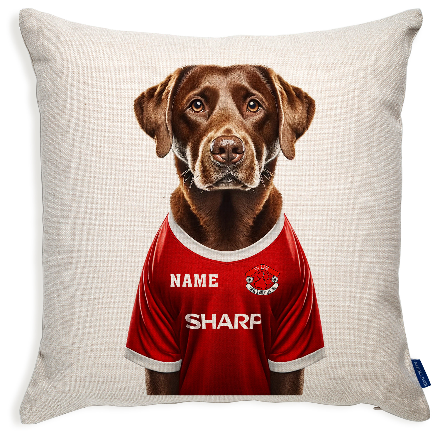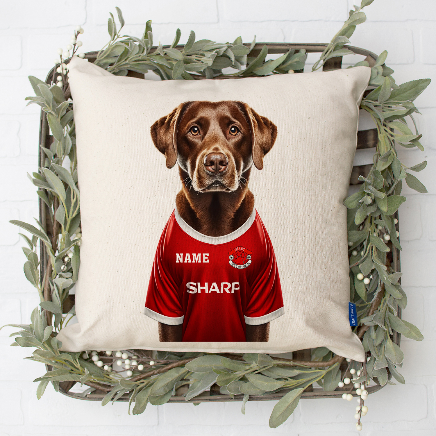 Manchester Football Brown Labrador Dog Cushion Personalised Cover DFC432