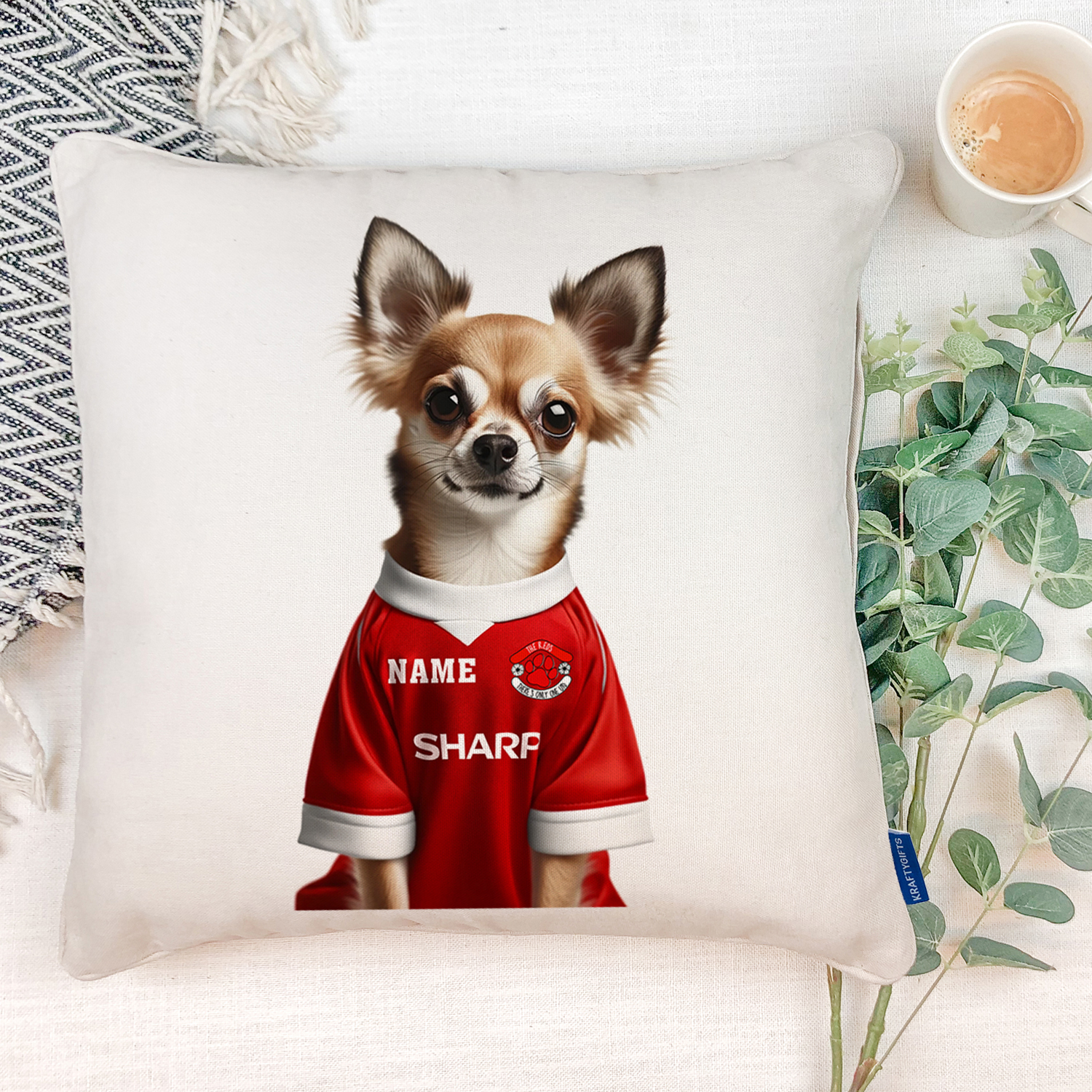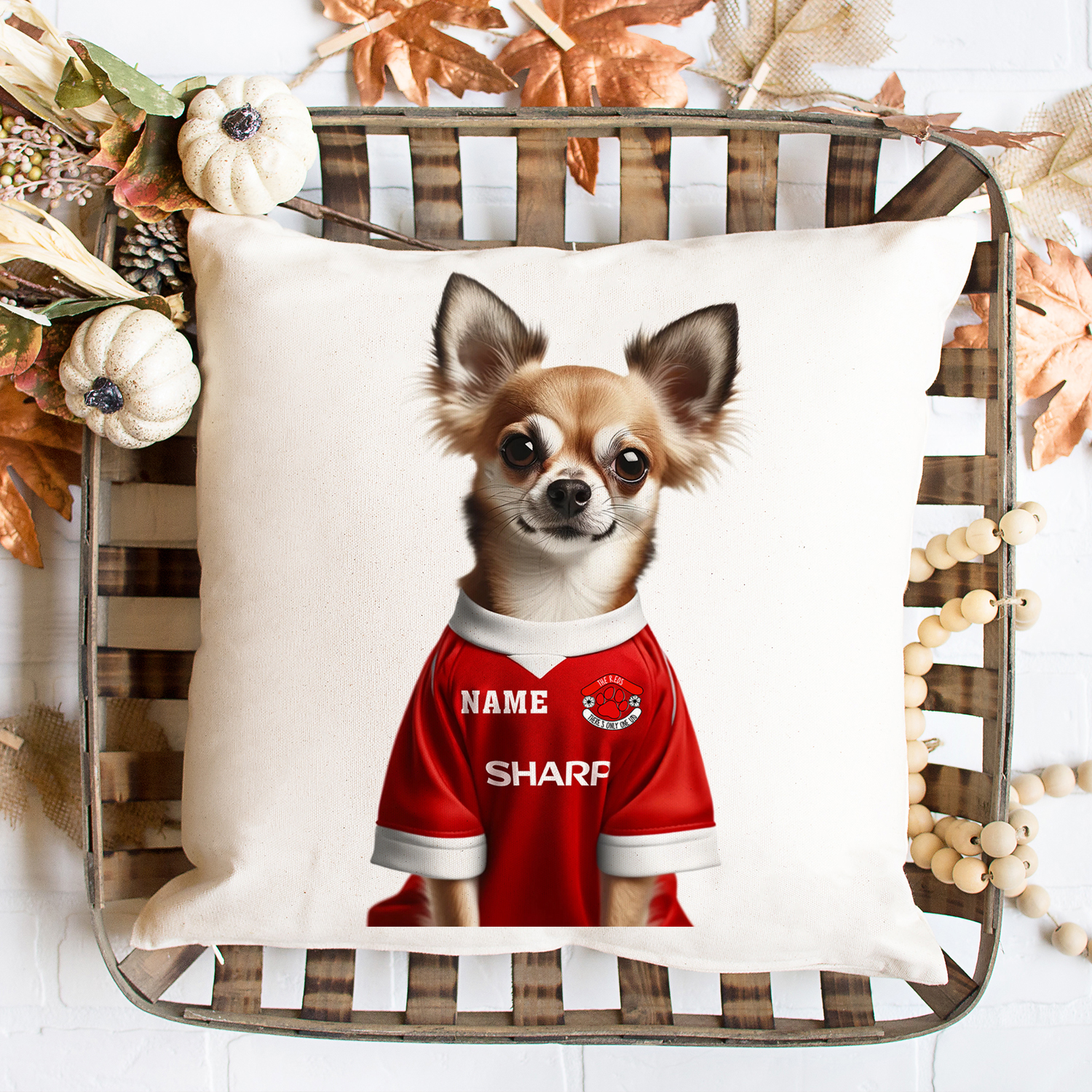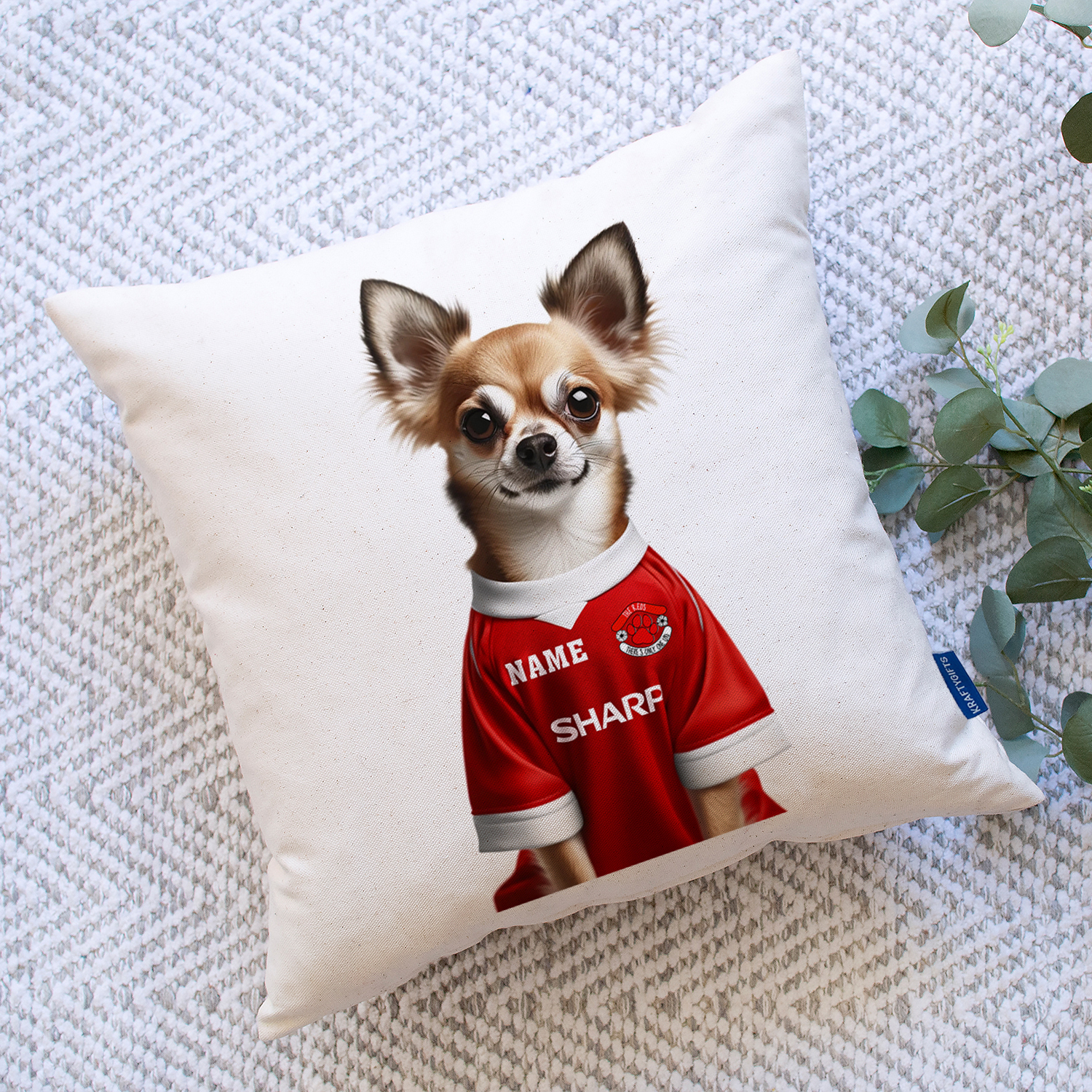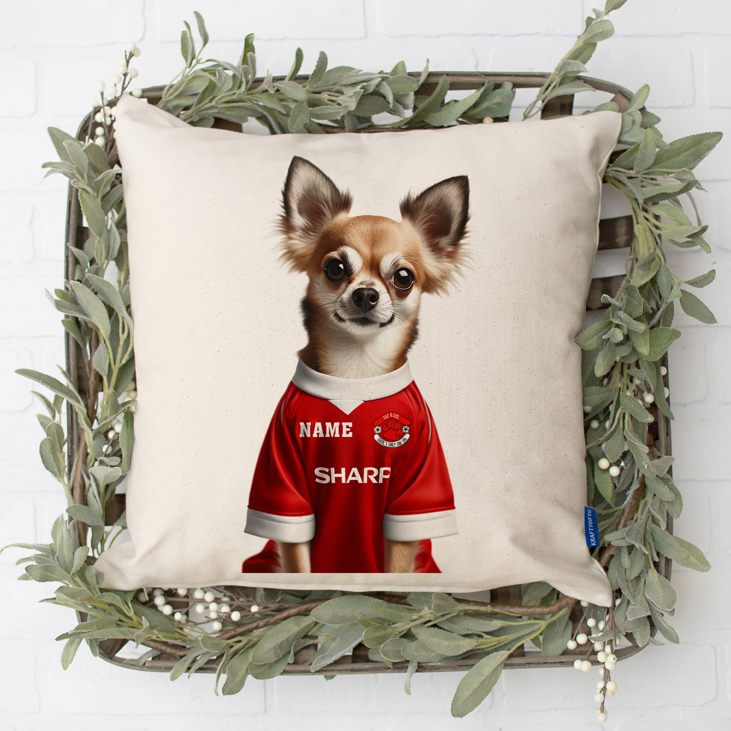 Personalised Dog Football Cushion Cover, the Perfect Football Team Fan Gift!