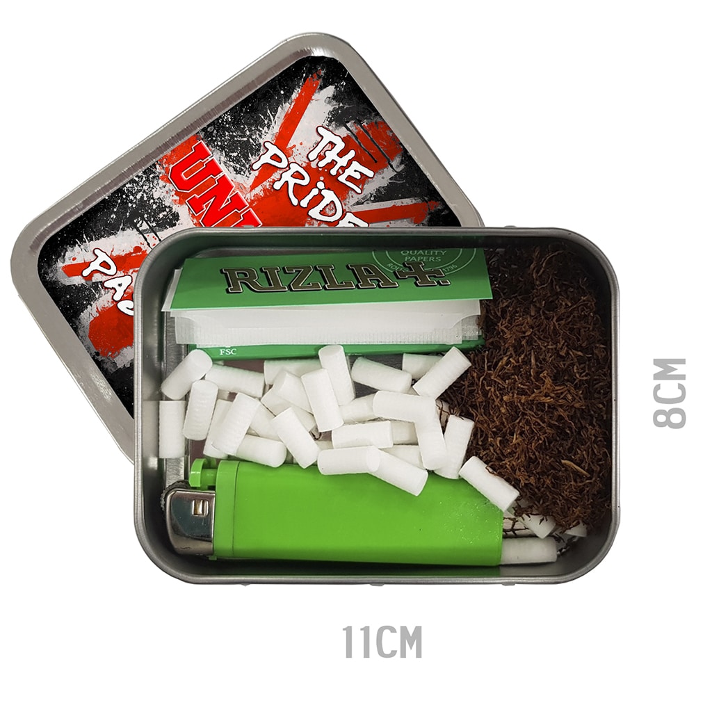 Keep ciggy papers, filters and loose baccy fresh in this custom retro casual football tin.