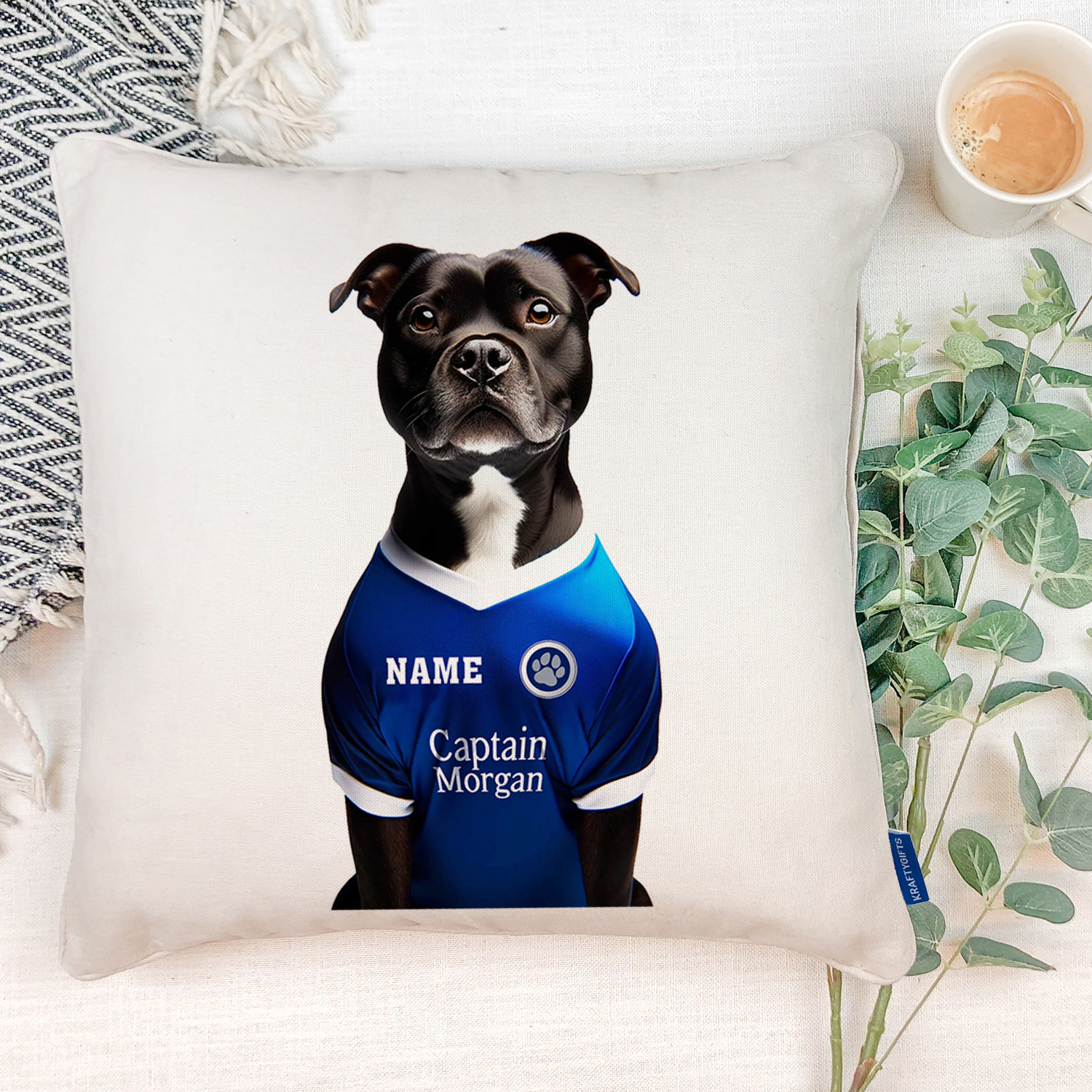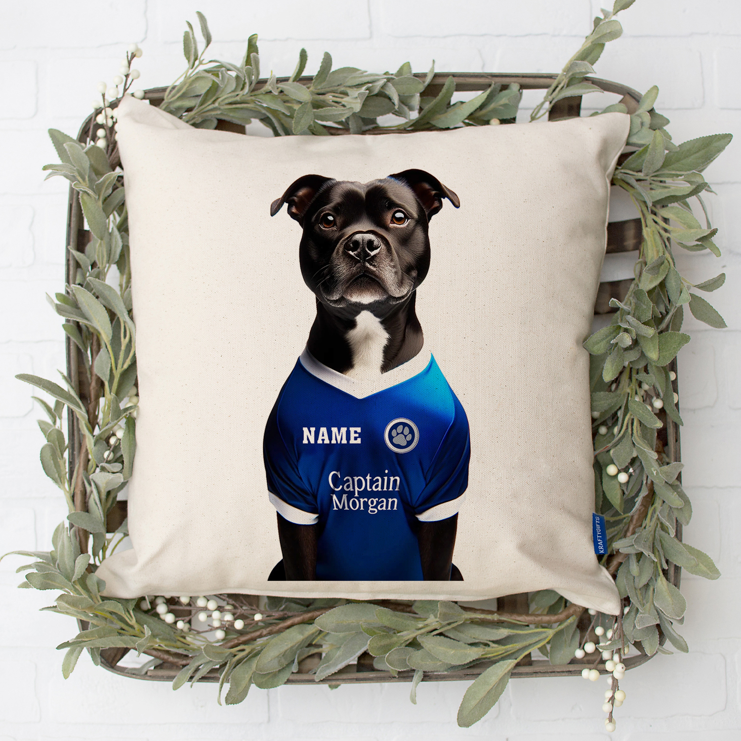 Millwall Football Black Staffy Dog Cushion Personalised Cover DFC361