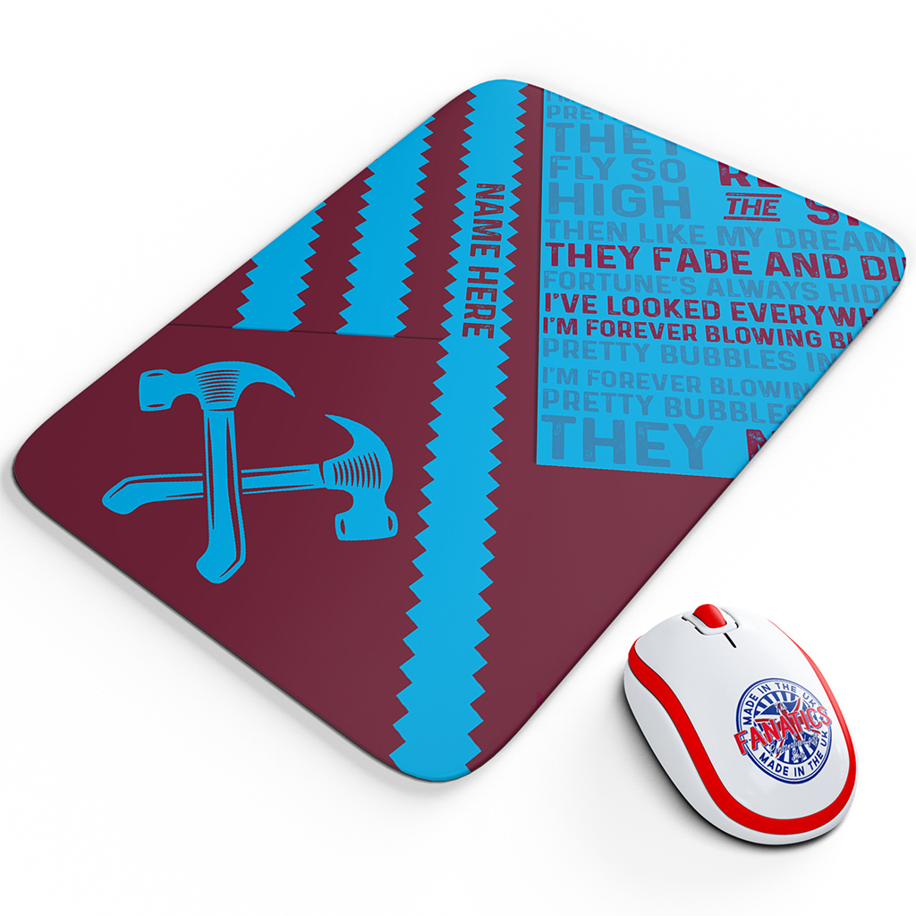 Personalised West Ham Football Mouse Mat Cover, the Perfect Football Team Fan Gift!